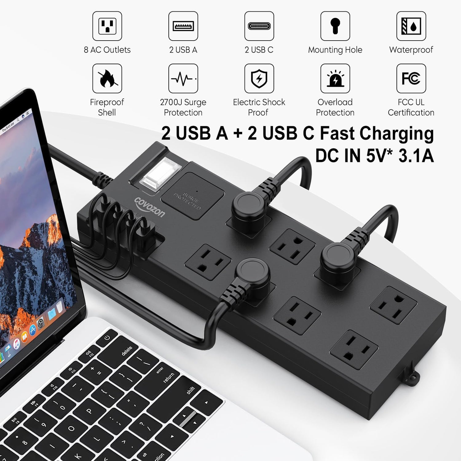 - 【Electric Shockproof Design】 For the new upgraded waterproof power strip, only a US standard plug can exclusively match the deliberately designed structure of the socket, which is patented by COVOZON, means Only the American standard plug inserted to turn on the circuit, other objects such as tweezers, forks, keys, and even children's fingers can't get powered through these Electric Shockproof outlets. Absolute security is guaranteed.