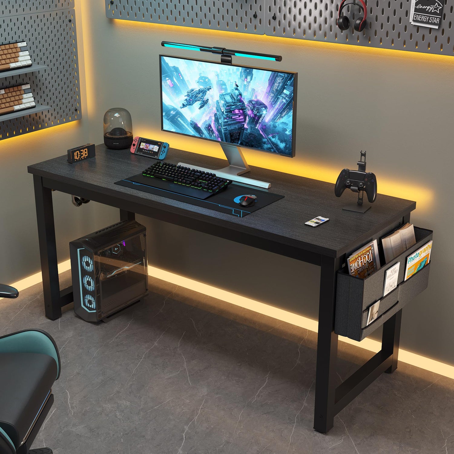 - [Multifunctional Storage] Gaming desk we installed a storage bag and multiple hooks on both sides of the computer table. You can put your magazine, files, books, and posters in the storage bag, gaining more storage space. The headphone hook can hang your headphone or bag firmly. And will help you organize your office desk workspace at home or office more efficiently.