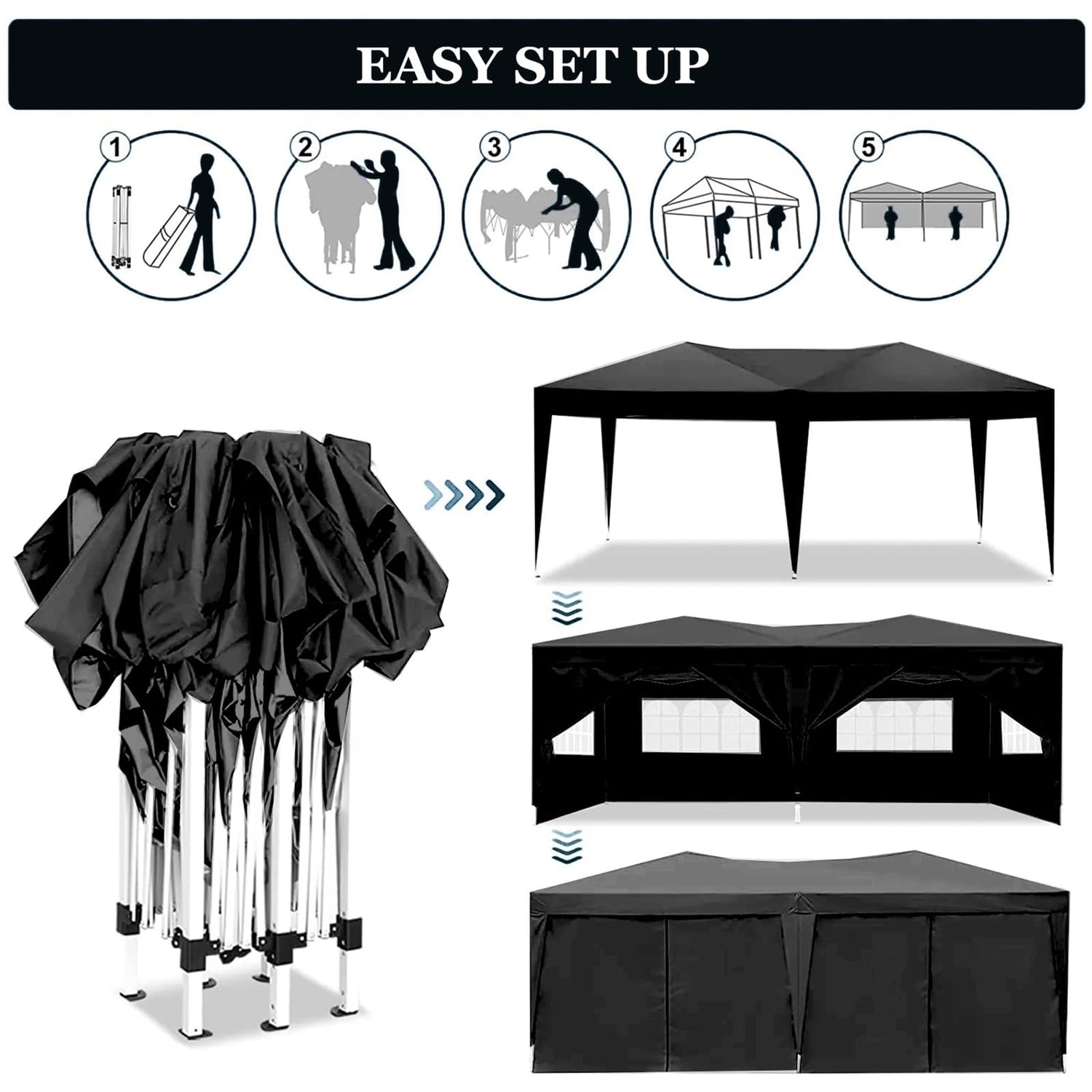 Susici 10x20 Pop Up Canopy Outdoor Tent Party Tent with 6 Sidewalls, Wedding Party Tent Outdoor Canopy Waterproof UV50 Canopy Tent Event Shelter for Parties, 6 pcs Weight Bag,Carry Bag,Black