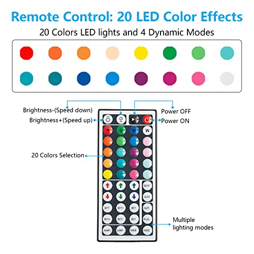 - 【 Adjustable LED Remote System】Equipped with remote control, features 16 colors, 4 light modes. This LED lights system is controlled by remote control to switch ON/OFF or change dynamic effects, decorating your home colorful and beautiful.