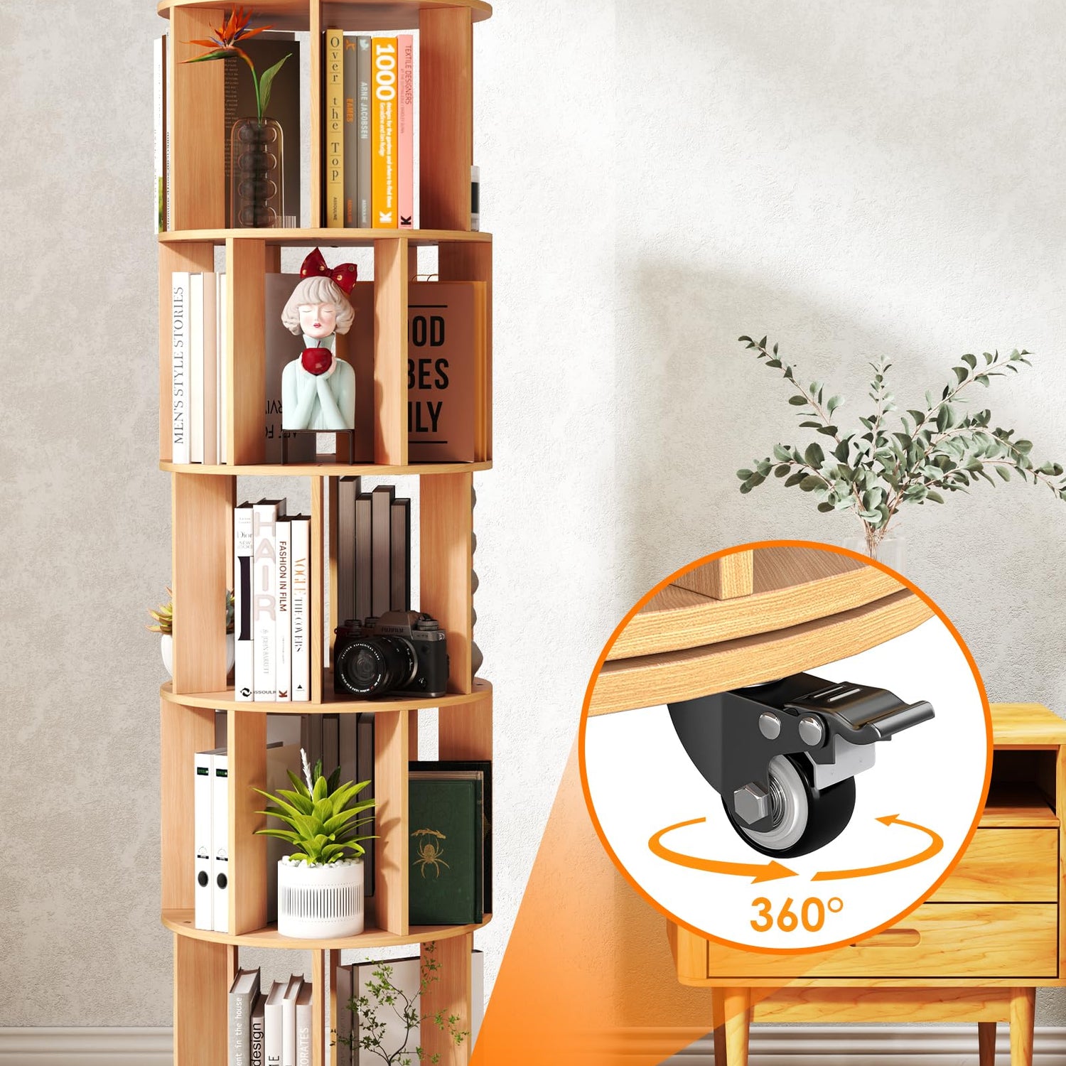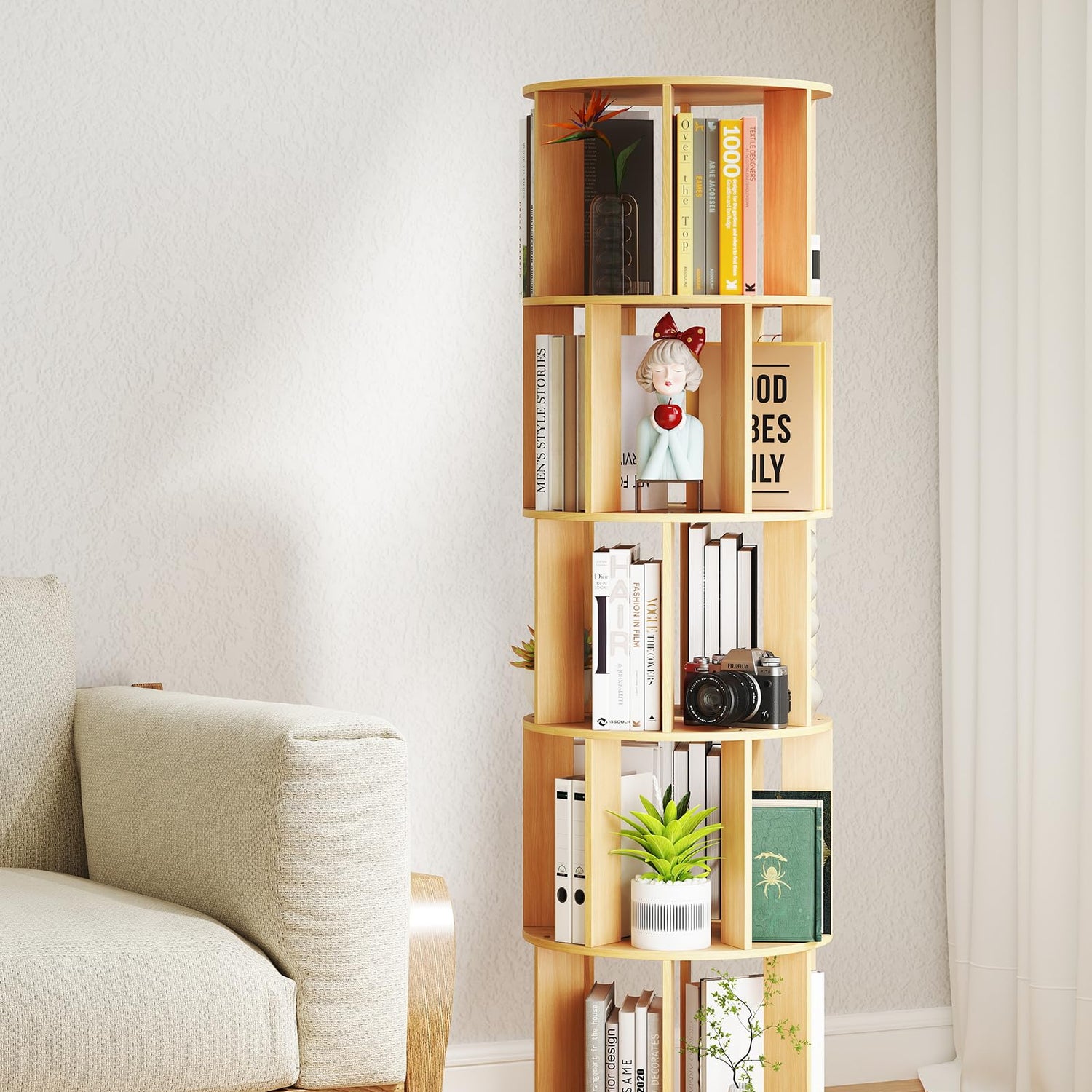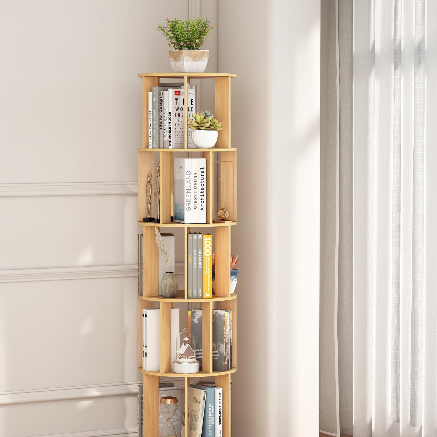 Suuiwau 5-Tier Rotating Bookshelf 360 ° Spinning Bookshelf Tower Wood Revolving Bookcase Corner Kids Bookshelves,Tall Narrow Storage Organizer with Sturdy Construction for Bedroom, Living Room
