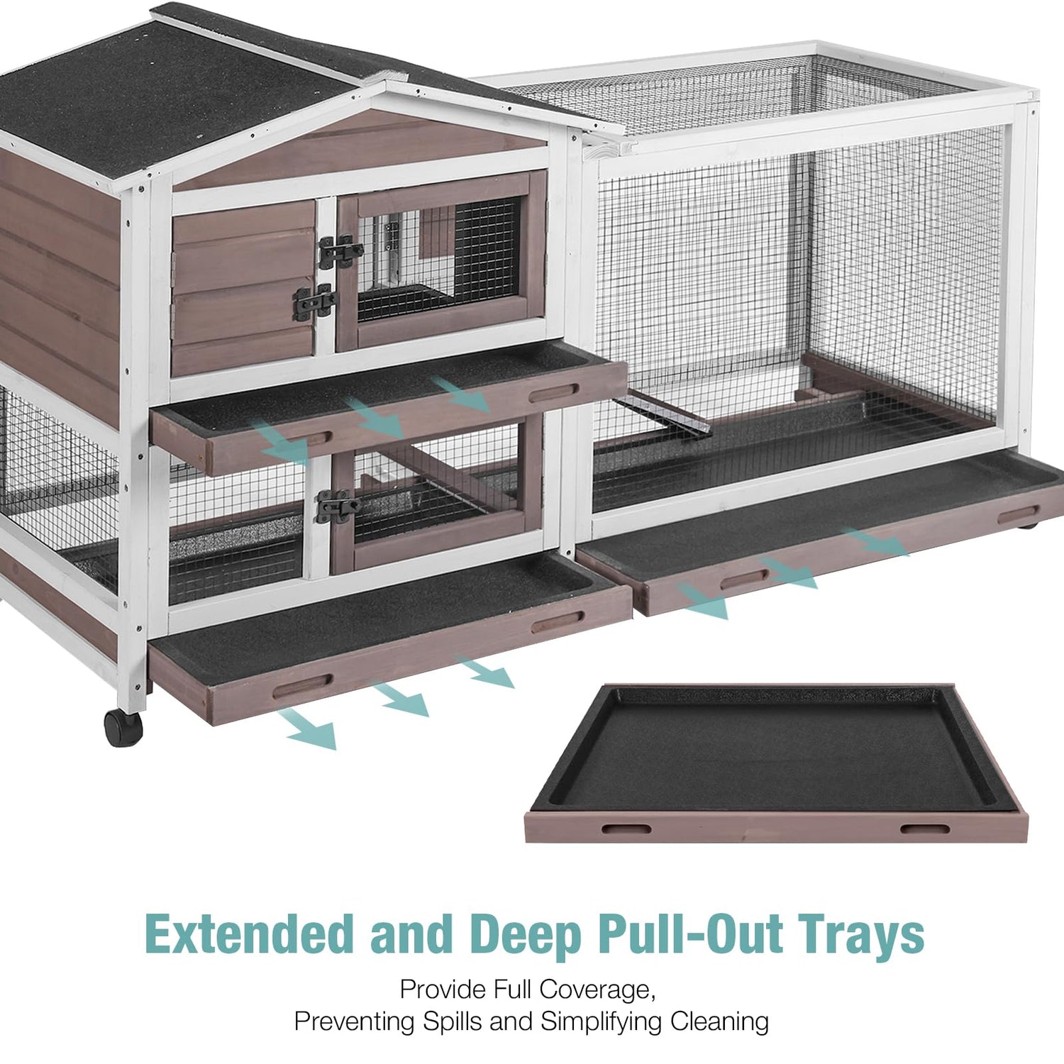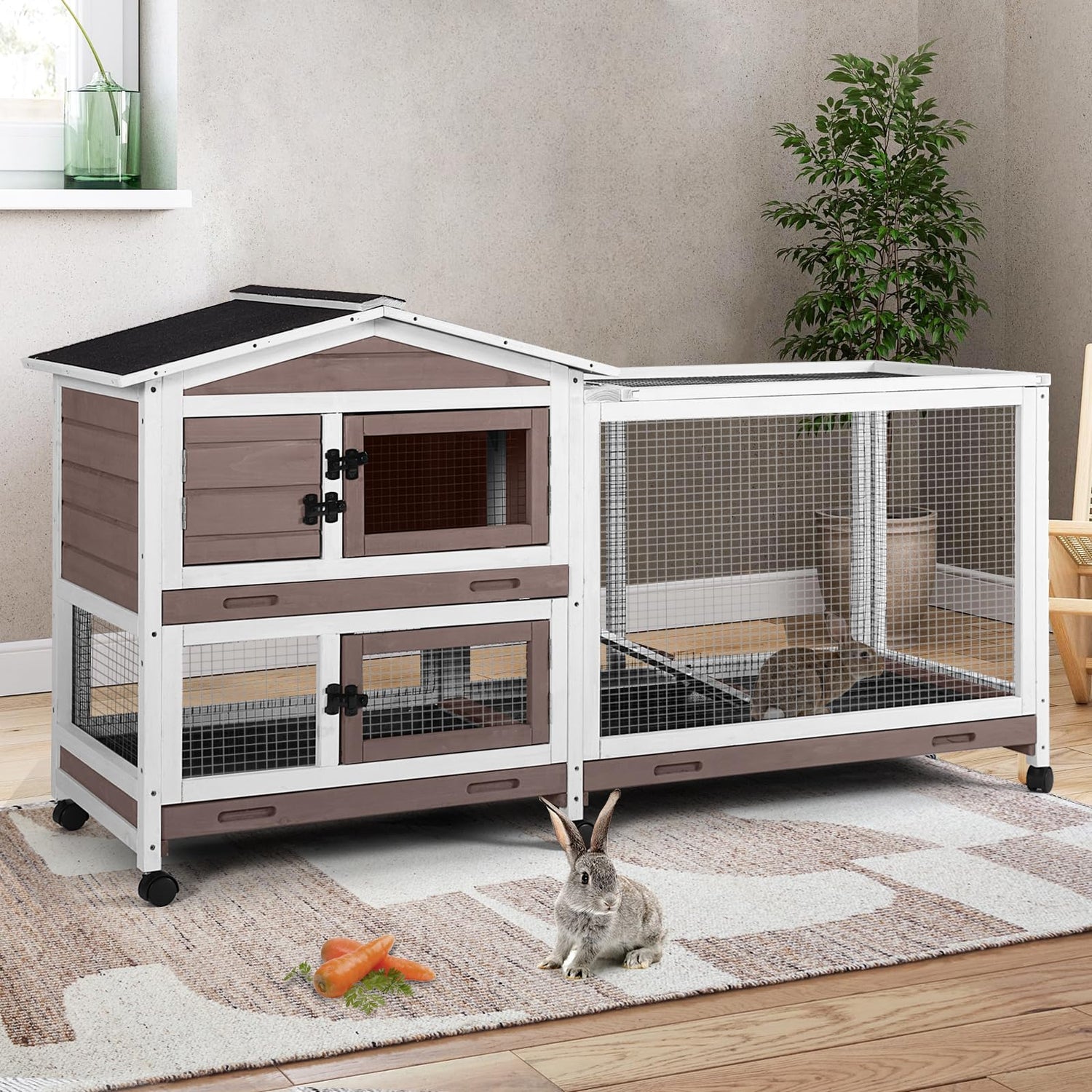 Suumerpety Rabbit Cage,Indoor Rabbit Hutch with Matel Frame and Pull Out Tray,Bunny Hutch Chicken Coop with Run (Brown)