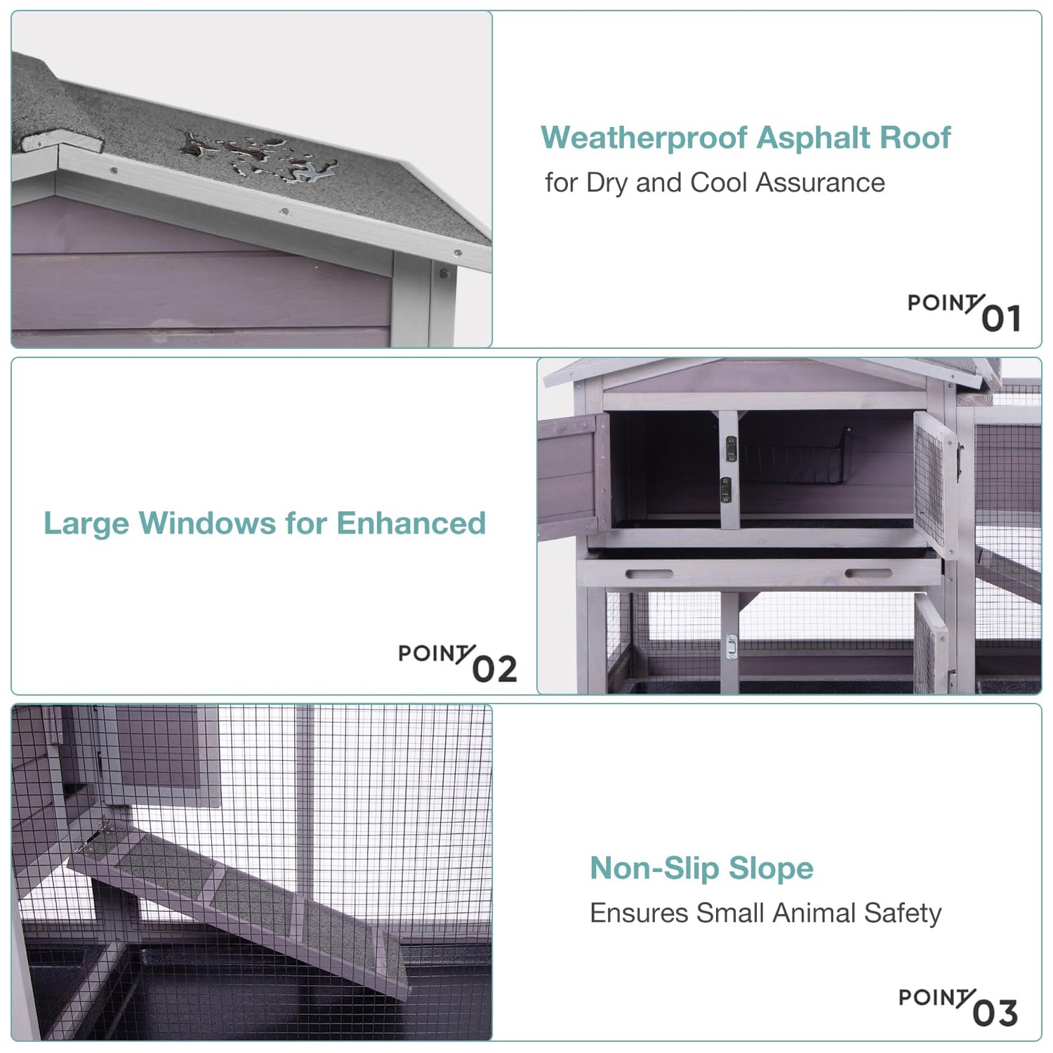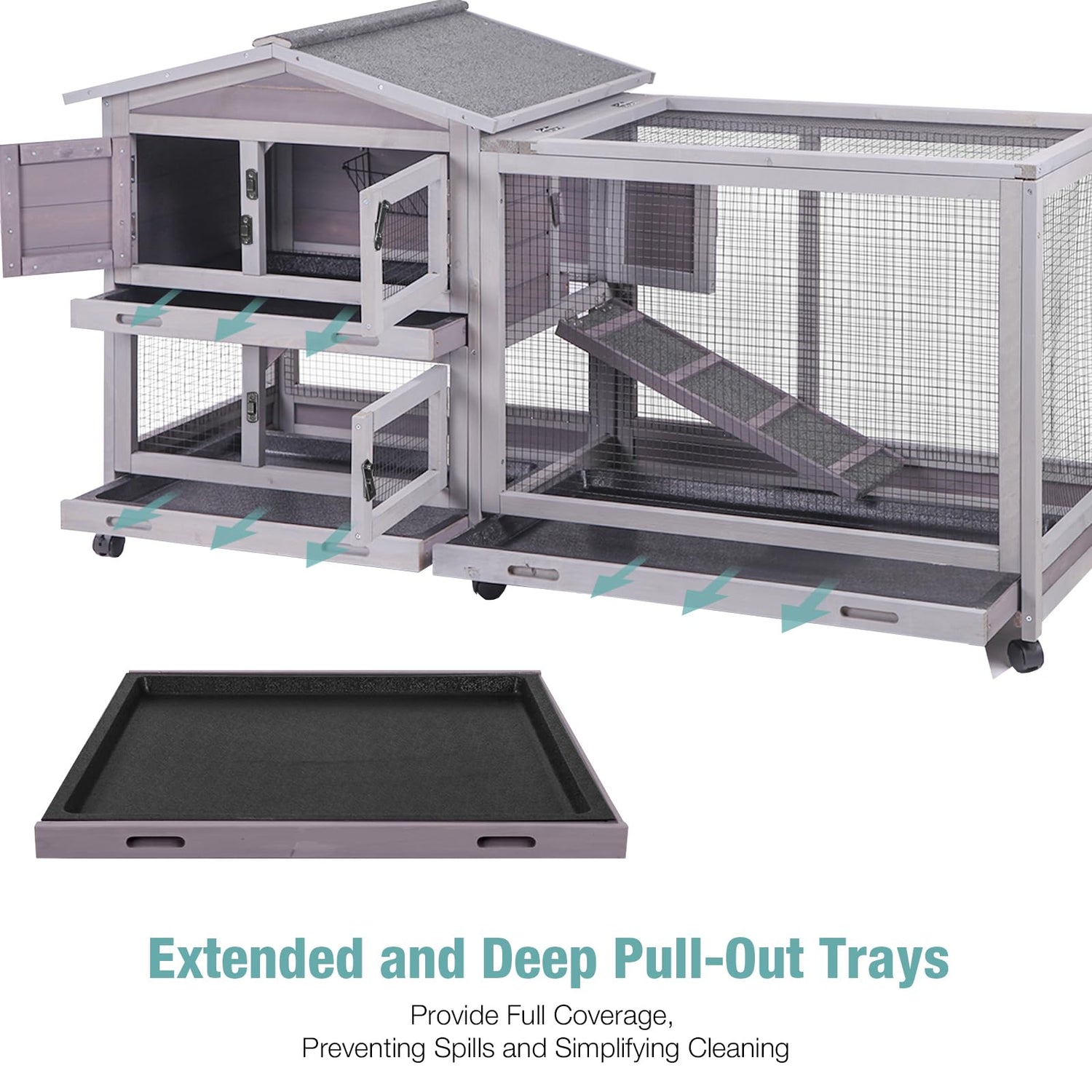 Suumerpety Rabbit Cage,Indoor Rabbit Hutch with Matel Frame and Pull Out Tray,Rabbit Hutch Chicken Coop with Run (Grey)