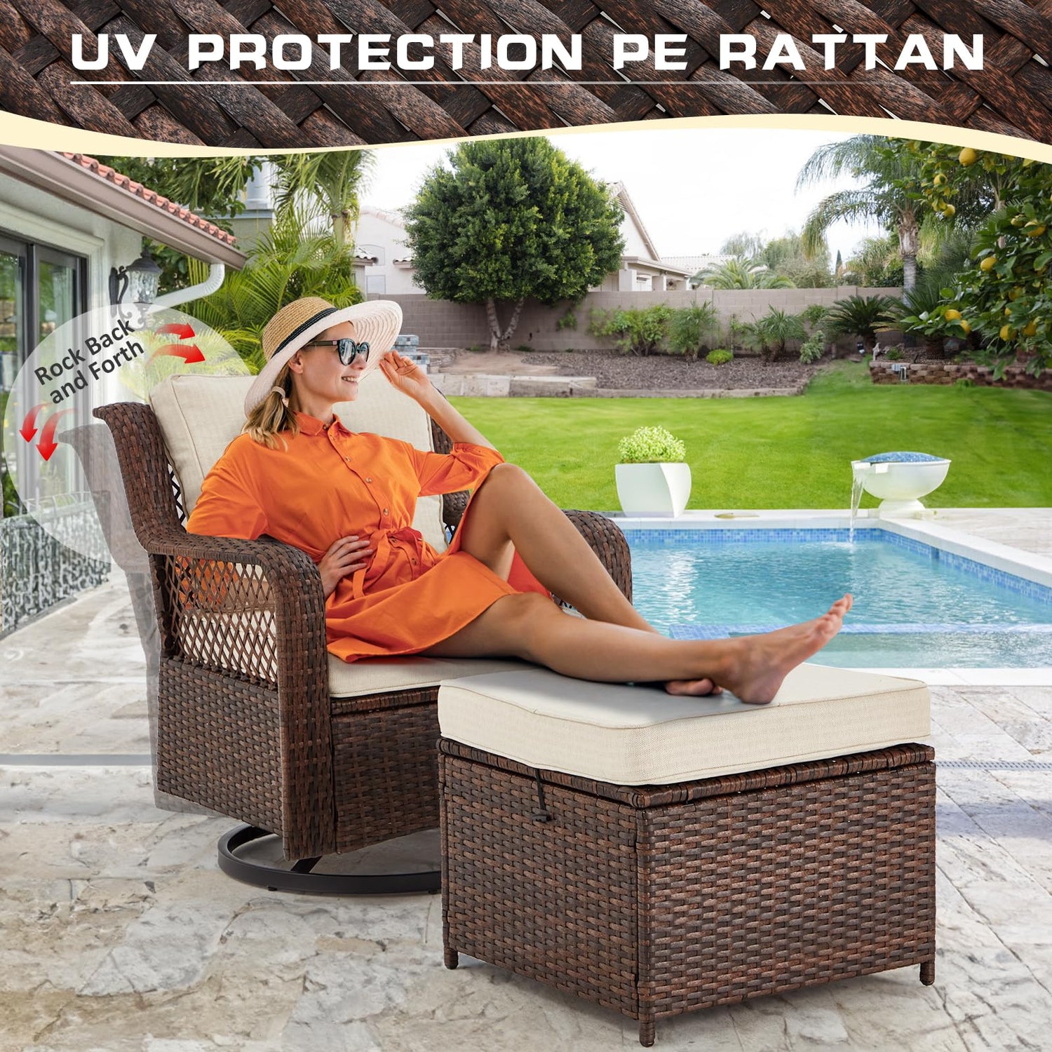 - Comfort & Adjustable: The swivel rocking chair features a 360° swivel and rocking function. Its design allows you to easily adjust the chair's direction and tilt angle, enabling you to enjoy delightful outdoor moments.