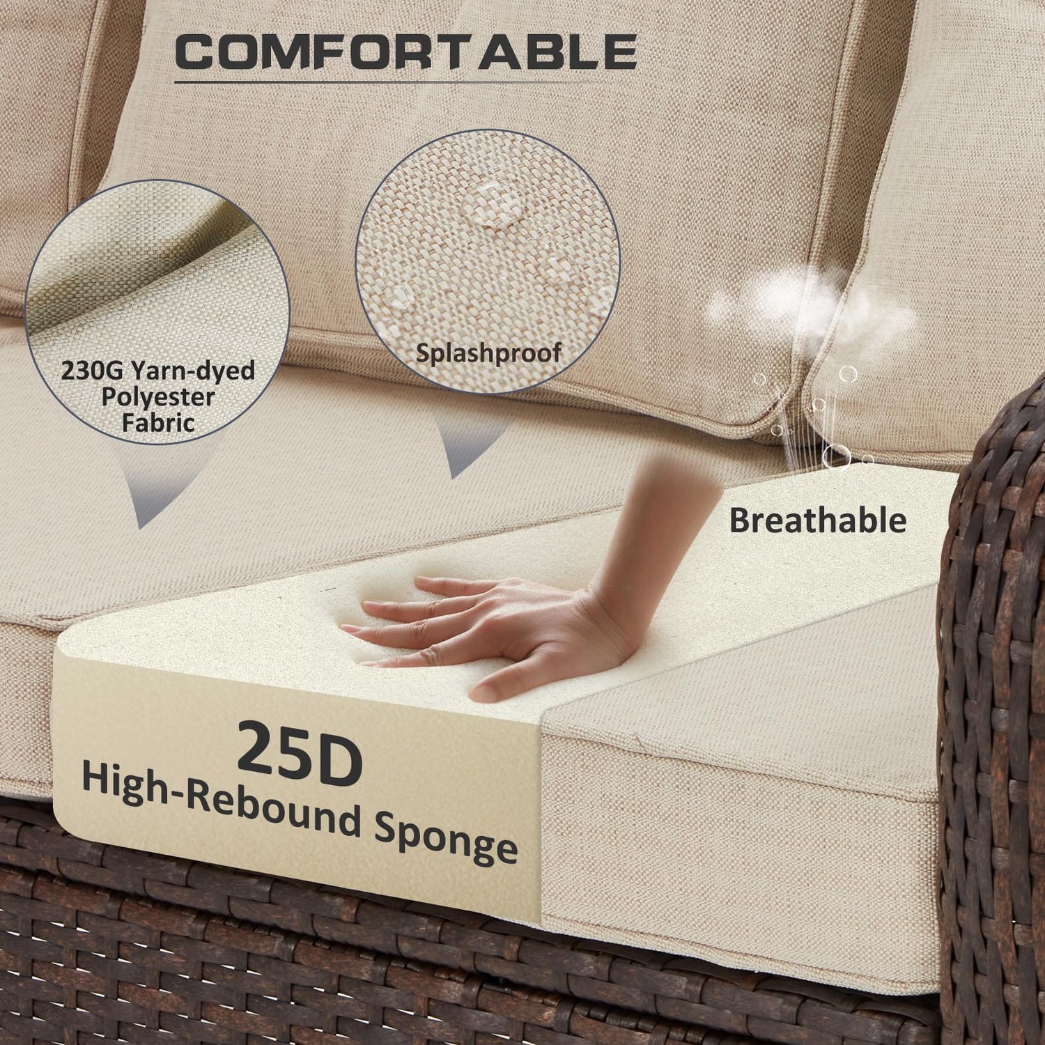 - Long-lasting: The wicker outdoor furniture withstands various weather conditions. The galvanized steel frame prevents rust, and the upgraded 230G yarn-dyed polyester fabric is splashproof, making it an ideal choice for outdoor furniture.