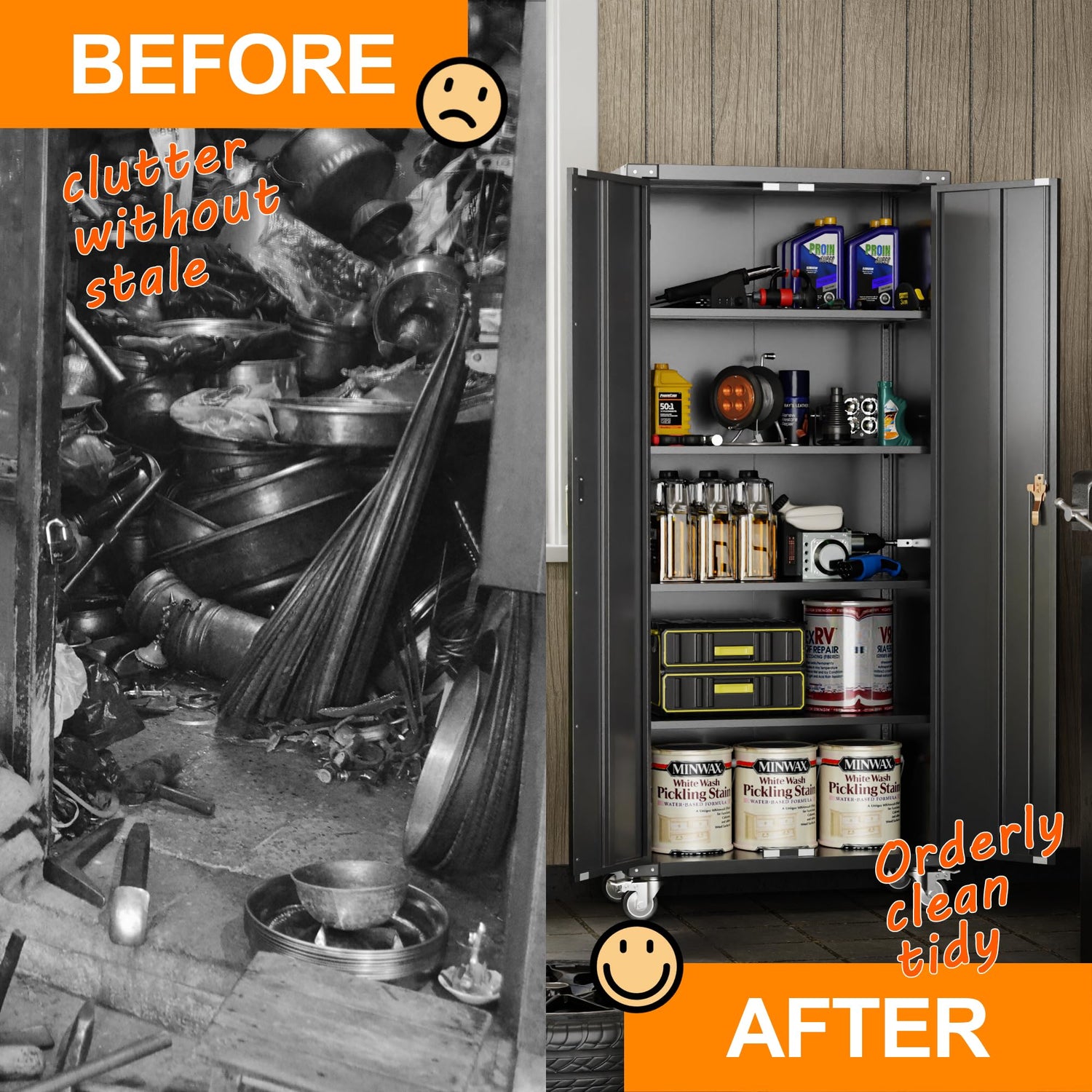 - 【Wide Use】 This metal cabinet with door and shelf can be used in garage, laundry, office or any place where additional storage is required.