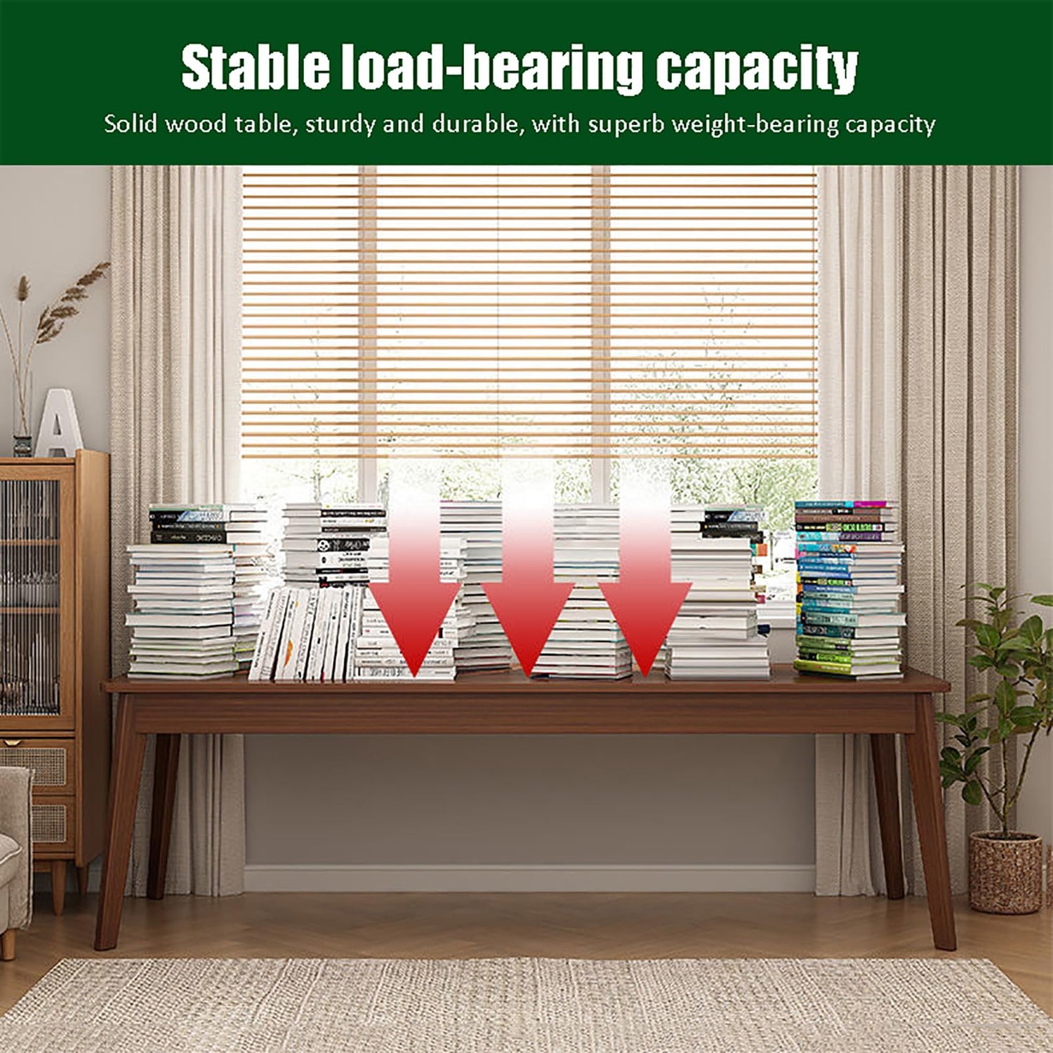 This long desk is used for home office work and study, with a mid century and modern minimalist appearance, and is made of solid wood frame, rubber wood legs and MDF panels. It is suitable for writing, coding, drawing, and working at home or office;