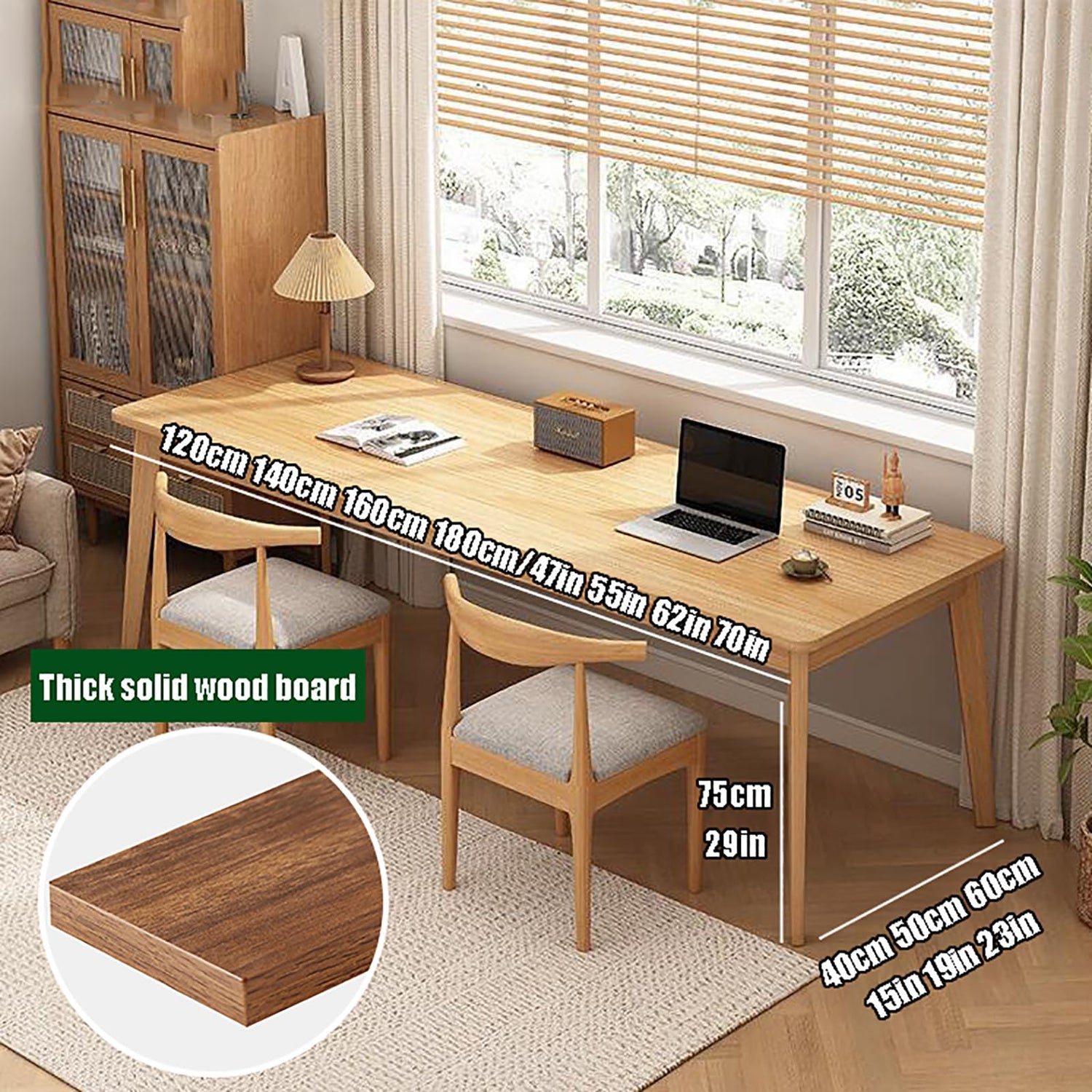 Our large wood desk is a versatile and practical addition to any workspace. This wooden desk offers ample room for office work, studying, writing, gaming, or even accommodating 2-3 people working together.