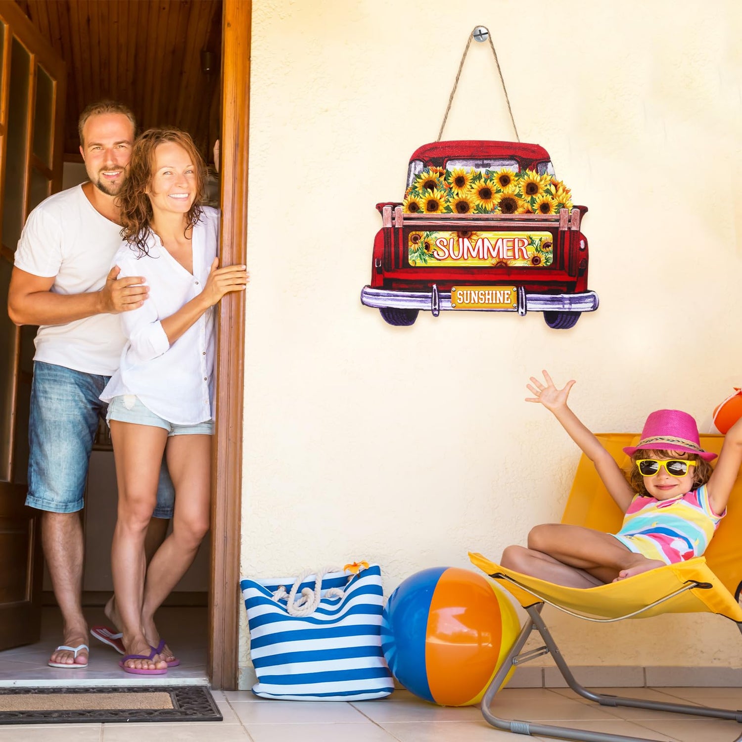 - Easy to Use: our front door decor are not only beautiful to look at, but also versatile and easy to use; Change your farm truck decor instantly by swapping the seasonal decor sign on the truck, our sign for front door is easy to use and has a hidden pocket slot behind the wooden fence of the truck where you can place different cards depending on the season, and it then is securely fastened