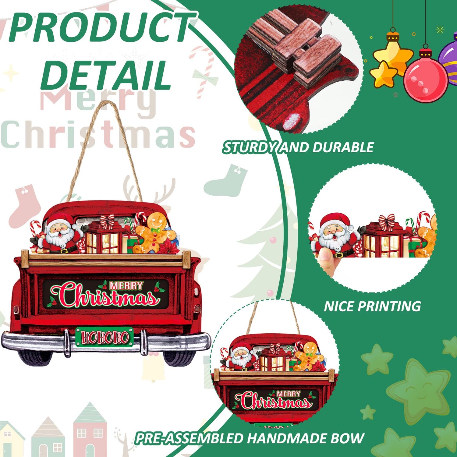 - Applicable Size: The truck shaped holiday decorations measure 13.78 x 10.63 inches, and the matching holiday signs come in three sizes, including 9.84 x 2.76 inches, 8.27 x 1.97 inches, and 3.82 x 1.34 inches; they are reasonably sized and can be easily hung in various locations, easily attracting the attention of guests and family members