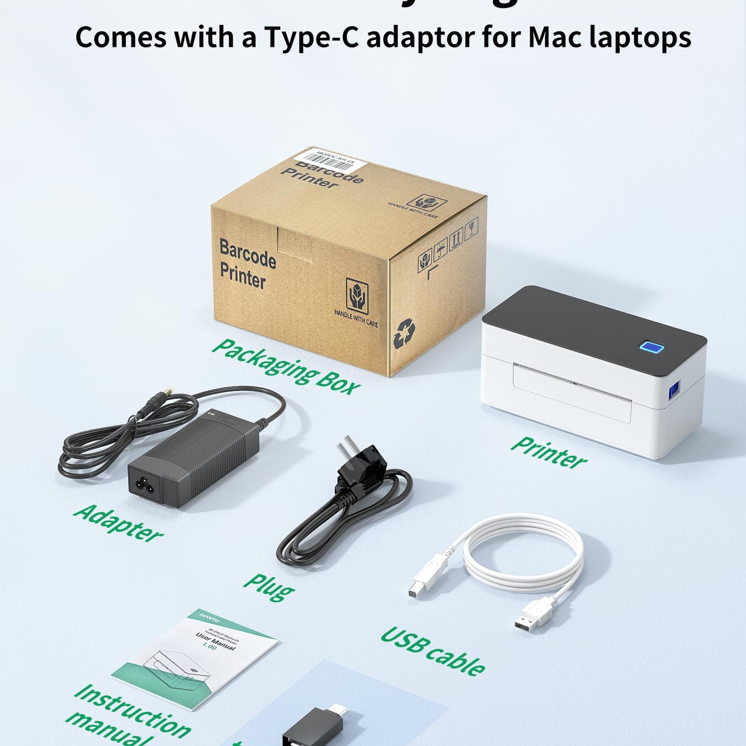 - Complete Package: The box includes one thermal printer, an instruction manual, a USB cable, an adapter, a plug, and a type-C port for Mac laptops – everything you need to get started right away