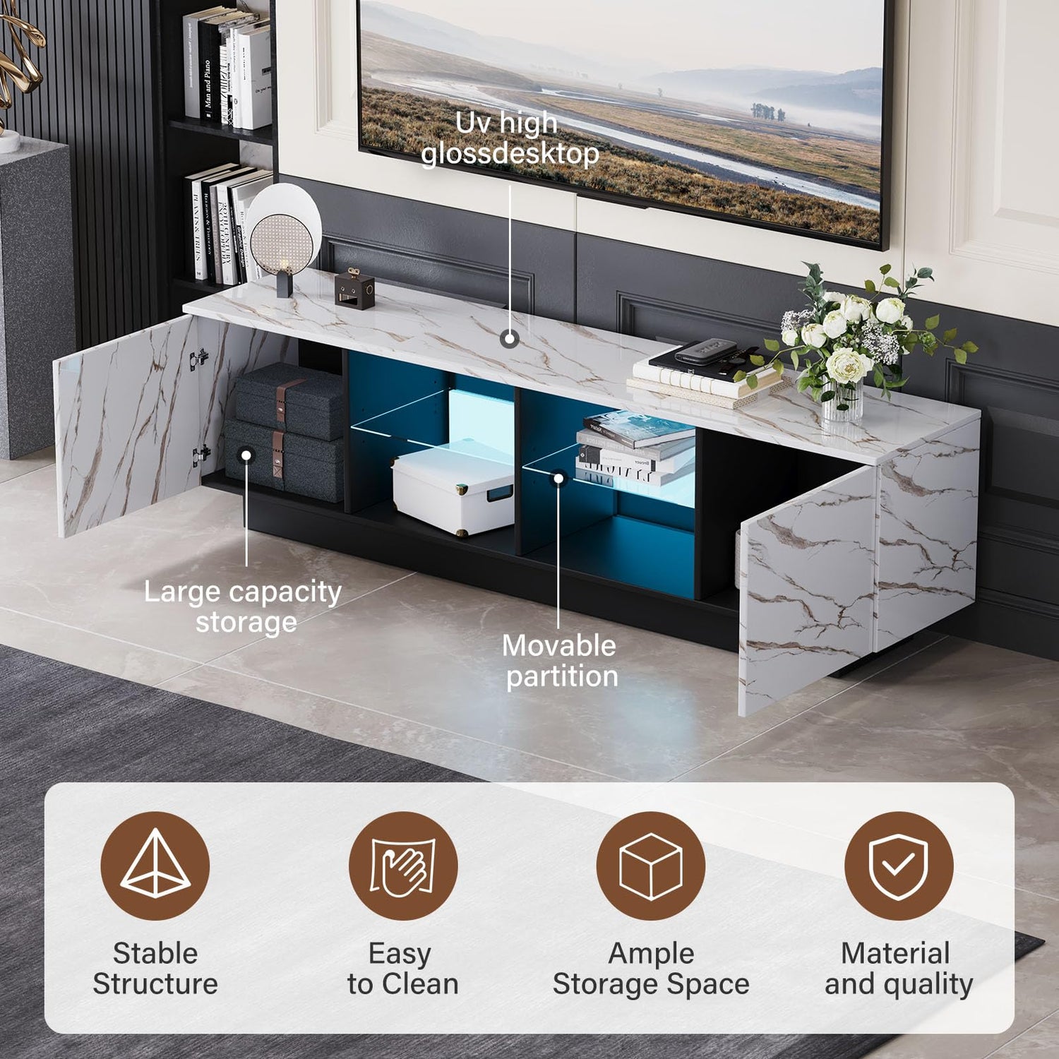 Svimi Modern Coffee Table & 65" TV Stand Set of 2, LED Entertainment Center with Power Outlets/Hidden Storage (White Coffee Table + White TV Stand)