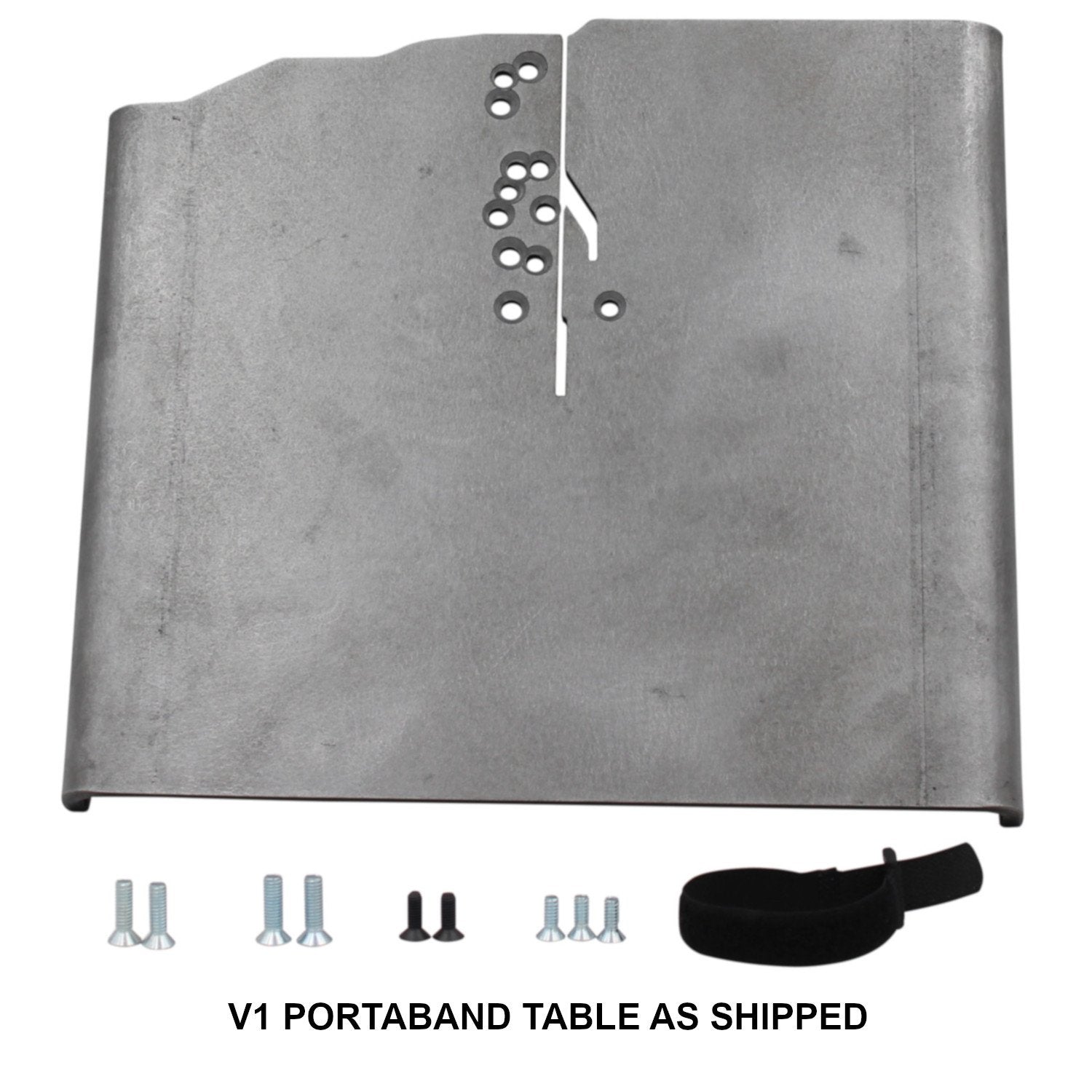 Details: SWAG V1.0 Portaband Table/W foot switch ere at SWAG our Portaband tables are built for individuals looking for quality, 100% American made tools at an affordable price. Designed for those working with limited space and or those looking to maximize the full potential of their hand held band saws. The SWAG V1.0 vice mounted Portaband table was our first ever item to debut on our website back in 2008, and has remained virtually unchanged to this day. With its simple yet robust platform the V1.0 Portaband table is laser cut out of ¼" thick steel so it will easily outlast the saw that is bolted to it. To convert your saw into a vertical band saw installation could not be any easier, remove the factory foot guards two or three screws depending upon model and reinstall the table with the provided fasteners. This kit contains all the necessary hardware to attach your Portaband saw to the SWAG Portaband tables.