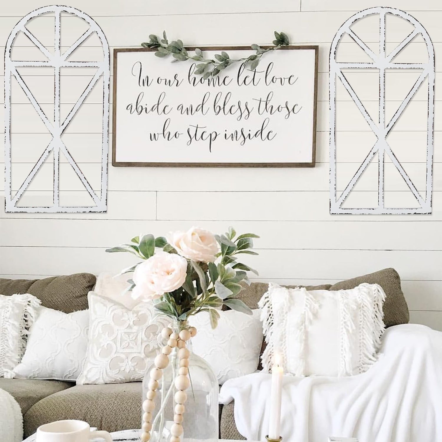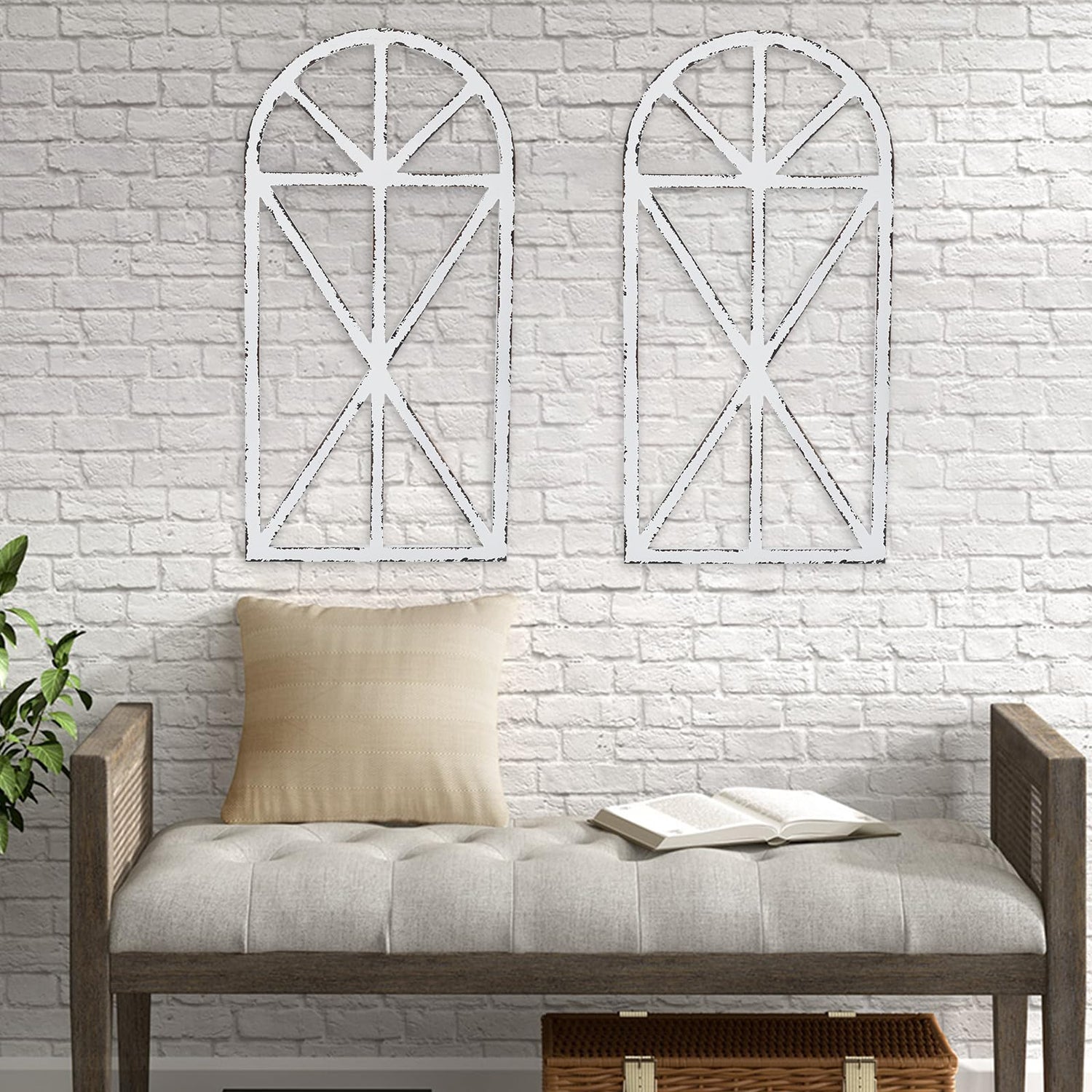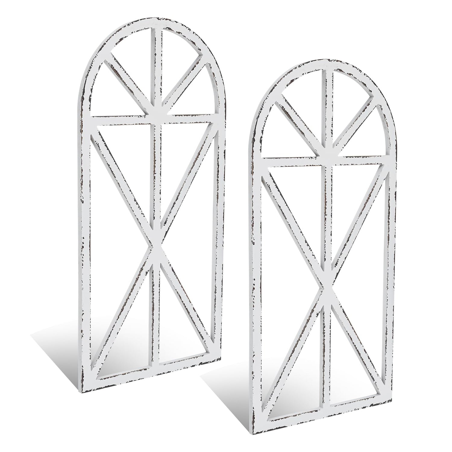 SwallowLiving 16" x 32" Rustic Cathedral Window Frame Wall Decor - Classic Farmhouse Charm for Your Home, White, Set of 2