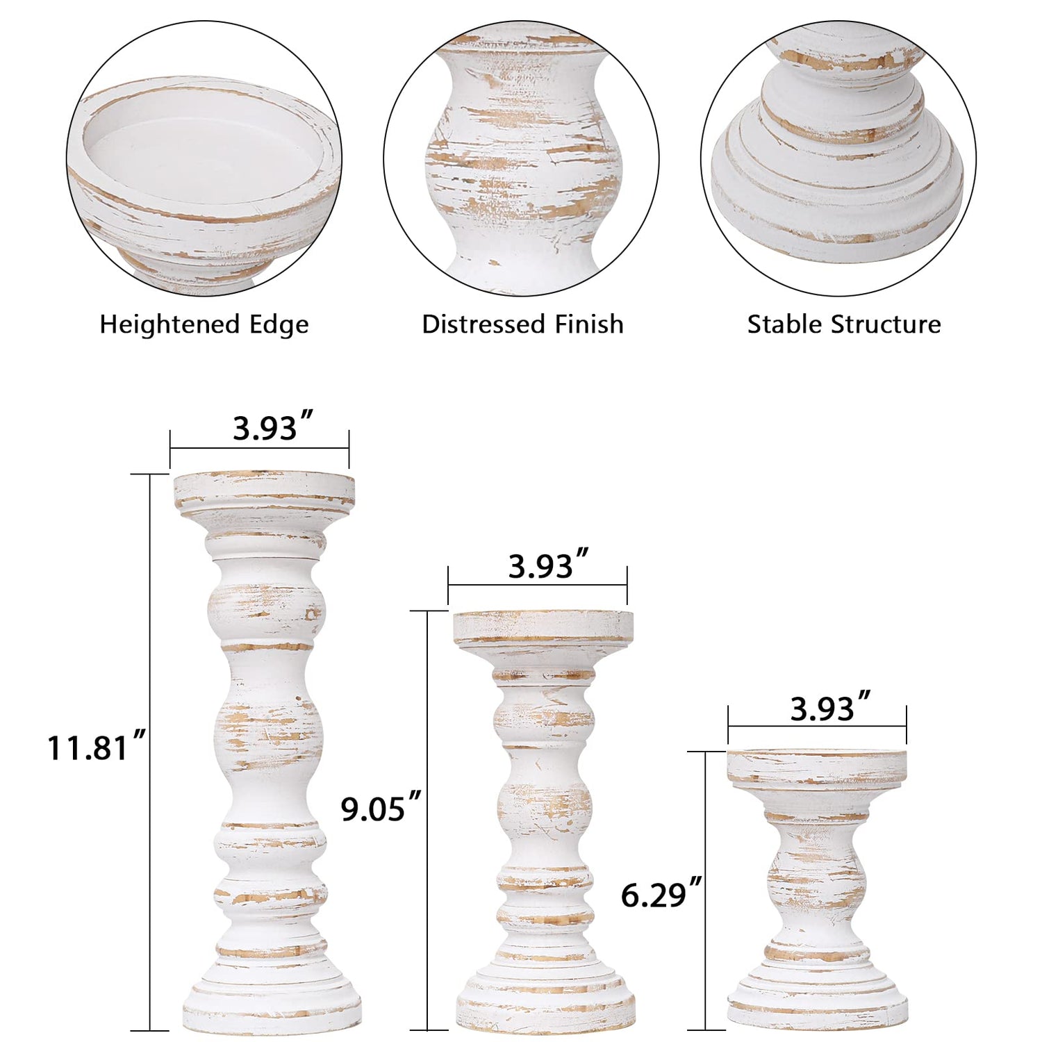 SwallowLiving Rustic Farmhouse Wood Pillar Candle Holder Set of 3 for Candlestick, White