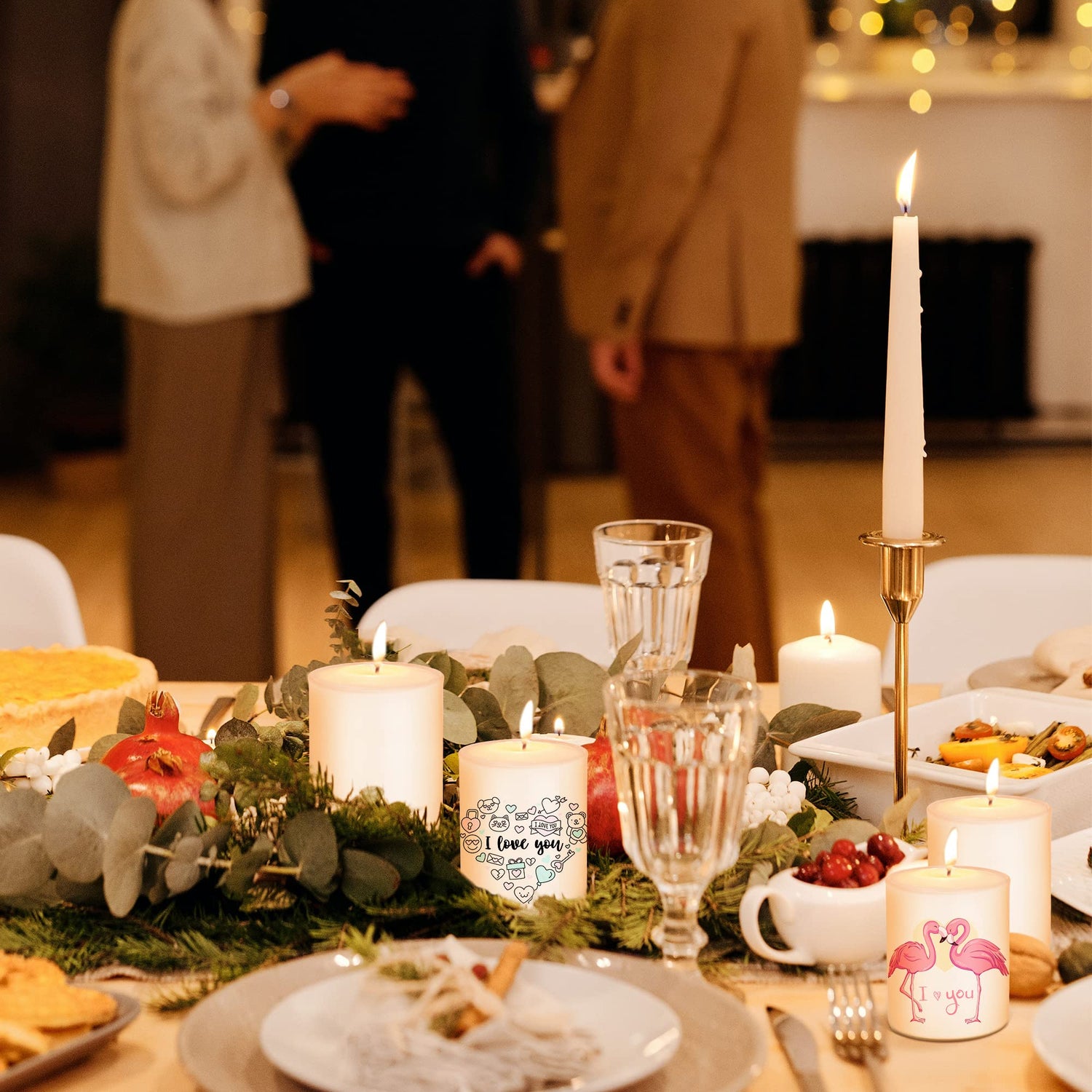 - 【TEA LIGHTS CANDLES HOLDERS】——Create a cozy atmosphere: These sublimation candle jar blanks are perfect for weddings, dinners, Valentine's Day, Christmas, Halloween, and other celebrations. The soft light they emit adds a warm and romantic touch to any setting.
