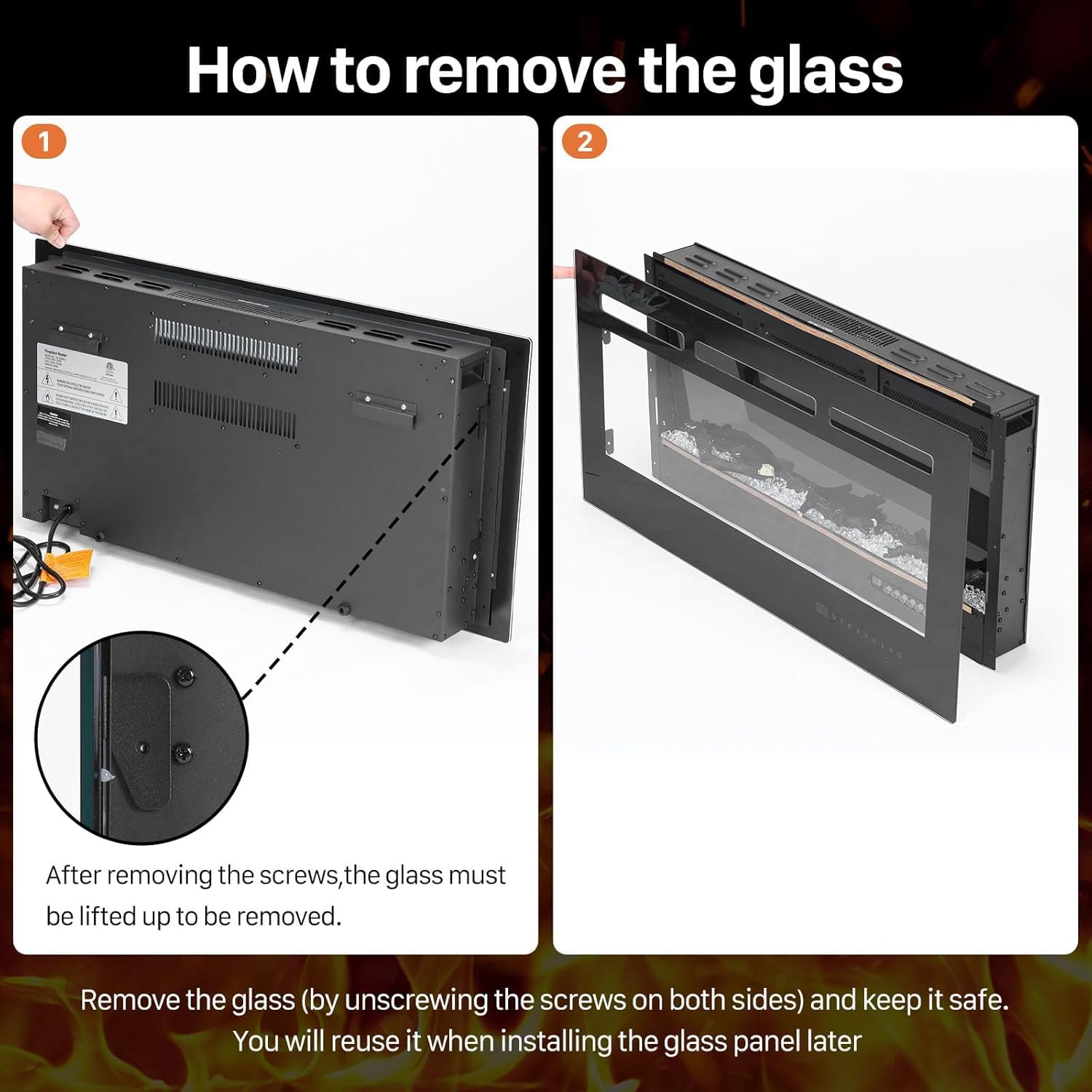 Sweetcrispy 36" Electric Fireplace Wall Mounted or Recessed Insert, 1500W/750W Freestanding Fireplaces Heater with Remote Control,13 Adjustable Flame Color, 12H Timer, Touch Screen