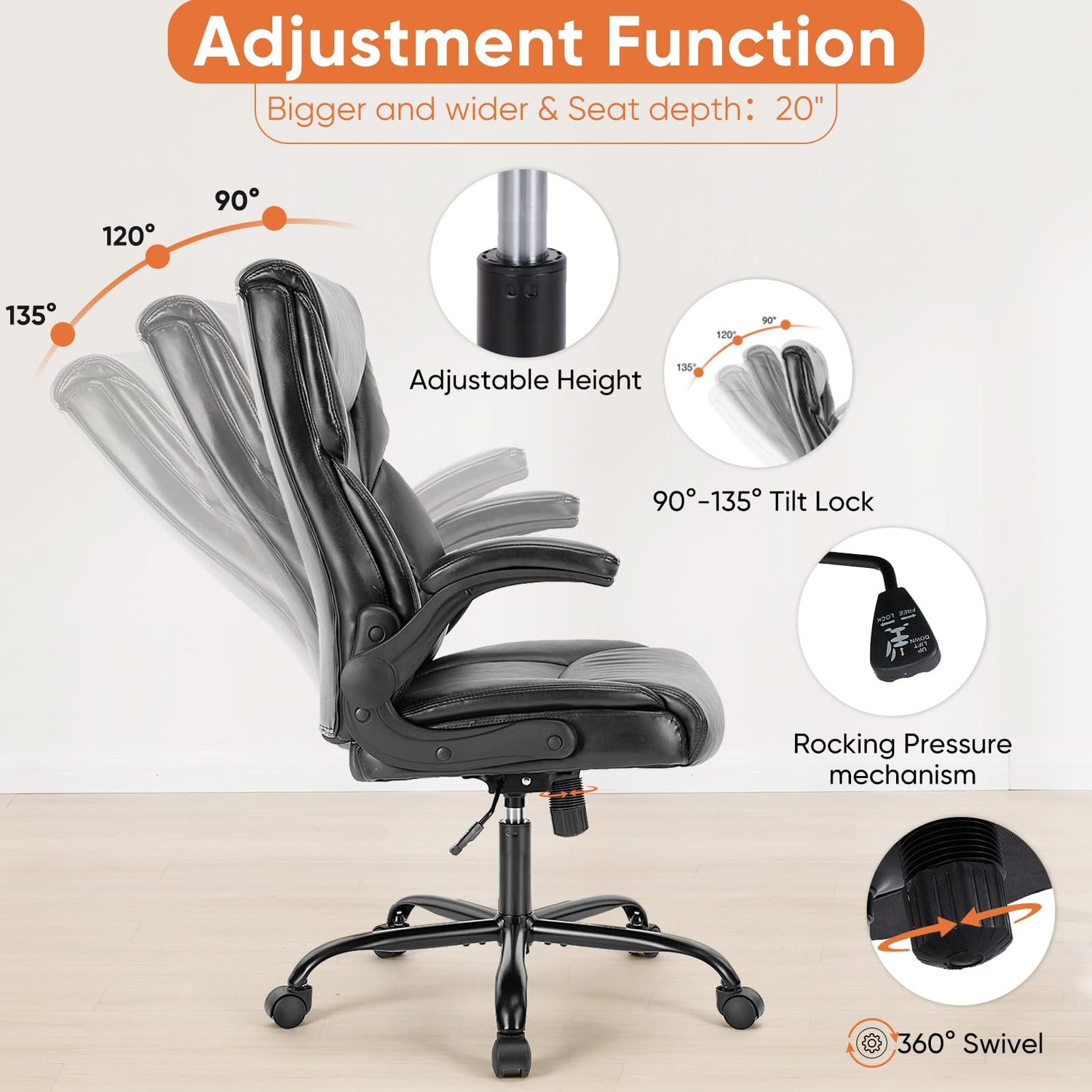 - 【High-Quality 】- This office chair has a heavy duty nylon wheelbase, 360° rolling wheels on our home office chair are flexible and suitable for your office environment. The tilt function with position lock and 120° back adjustment, SAFE AND COMFORT, are ready for your office rest, perfect for home, office and boss desk!