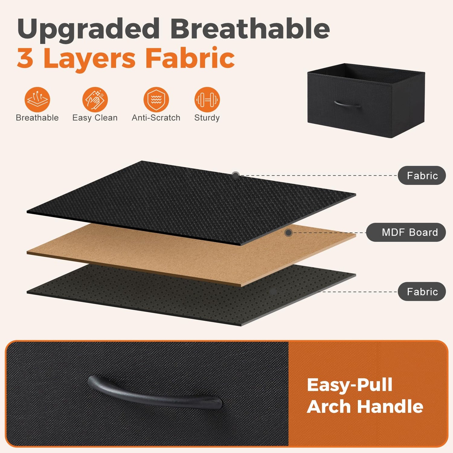 - 【Sturdy and Durable】This fabric dresser combines water-resistant MDF board with a durable steel frame, make it sturdy under load 66lb. Anti-tipping accessories are also equipped to prevent accidents.