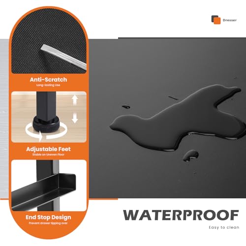 - Studry & Durable: The nightstand has a strong steel frame and water-resistant wooden top to ensure a long service time, easy-pull plastic handles to make opening and closing smooth, and 4 adjustable plastic feet to protect the floor from scratches.