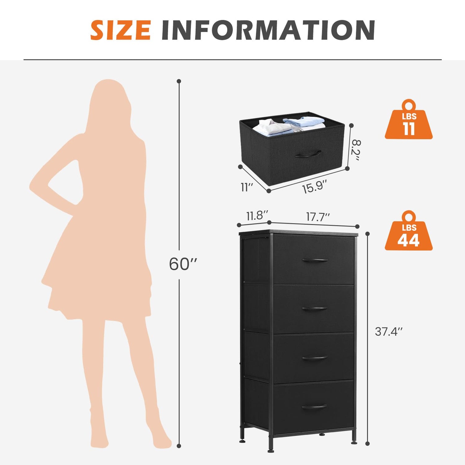 - Nightstand Design: The nightstand comes with 4 removable fabric drawers design of the side table matches perfectly with any furnishing style. The bedside table offers large storage space for nighttime necessities.