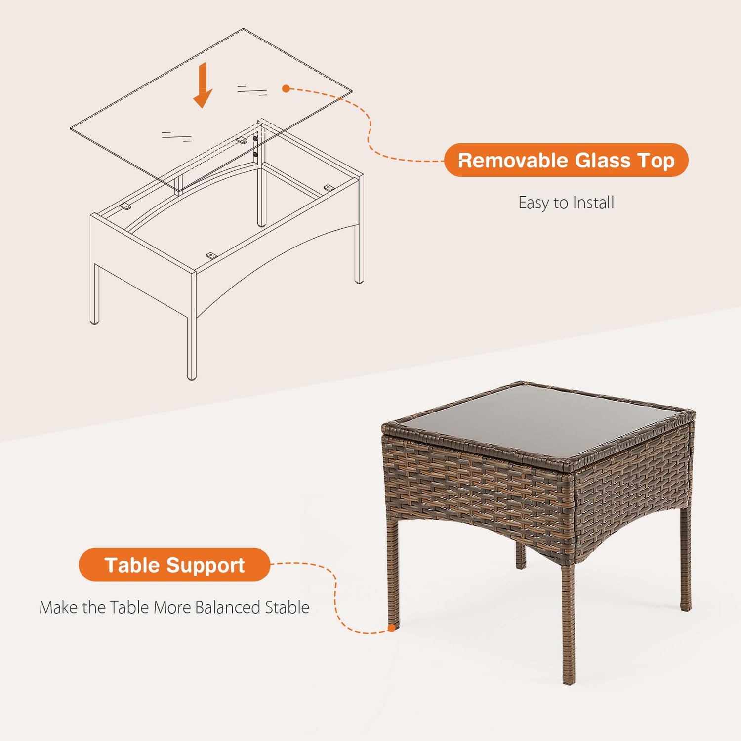 Sweetcrispy Patio Furniture Set 3 Pieces, Outdoor Furniture with Soft Cushion and Glass Table, All Weather Manual Weaving Wicker Rattan Patio Chairs for Garden, Terrace, Porch, Lawn (Brown and Beige)
