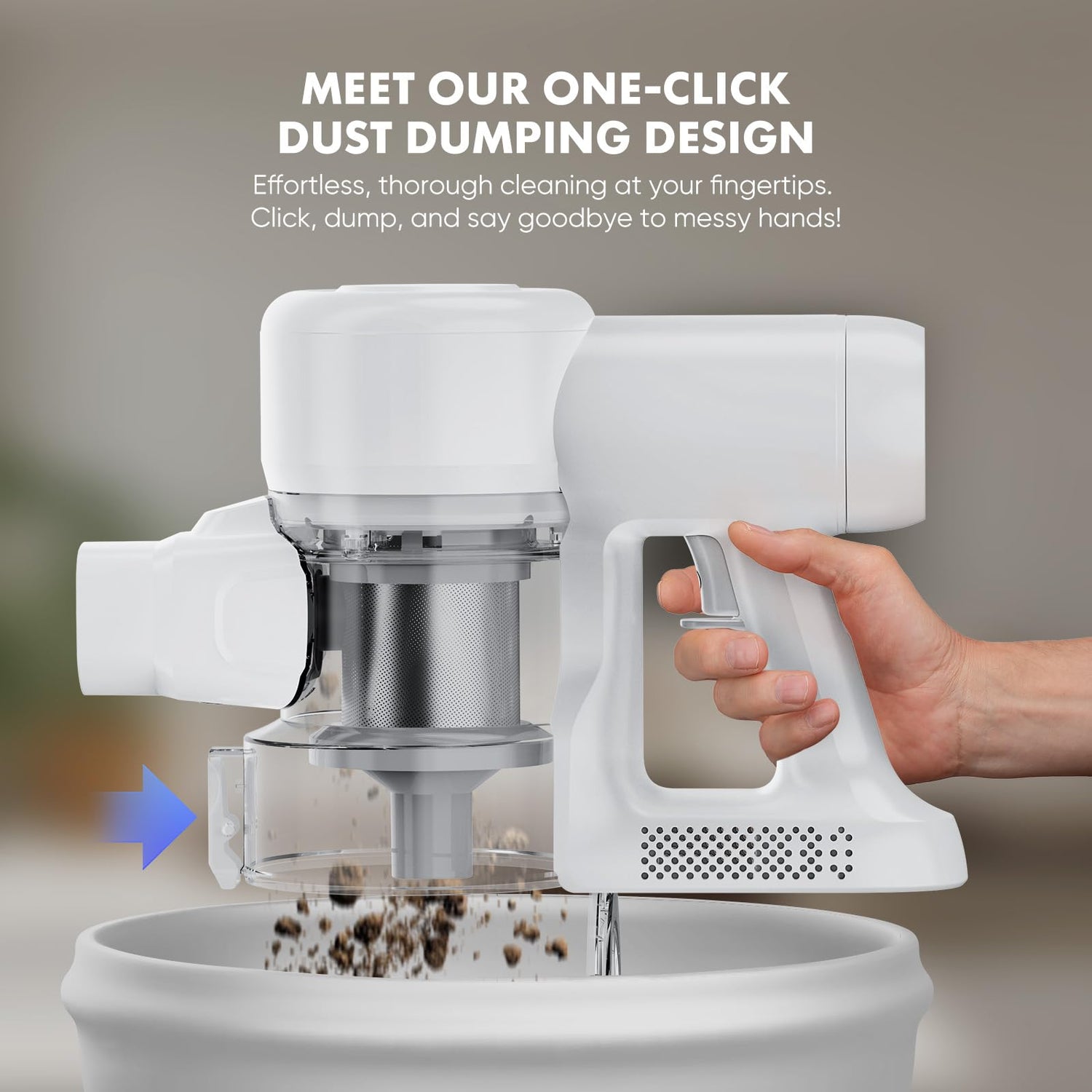 - HIGH EFFICIENCY HEPA FILTER SYSTEM: Equipped with a sealed cyclone filtration system and a HEPA filter, it can efficiently adsorb fine dust and allergens, and lock the dirt in the dust cup to avoid secondary pollution. Regular cleaning of the filter and sponge can effectively prevent suction from weakening and maintain a clean air environment.