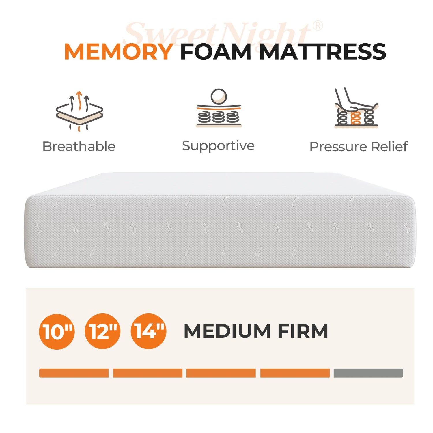 - Fits All Bed Frames-This Sweetnight queen mattress works on platforms, slatted bases, and adjustable frames. Its universal design ensures seamless compatibility and comfort in any setup.