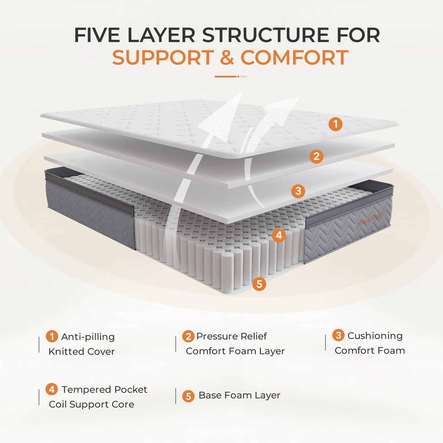 - MOTION ISOLATION FOR UNDISTURBED REST - The mattress features great motion isolation thanks to its sturdy support core which is made of individually pocketed coils. Each coil reacts to your body movement independently to reduce surface motion. You can rest assured knowing that you won't be disturbed by your partners movement during the night.