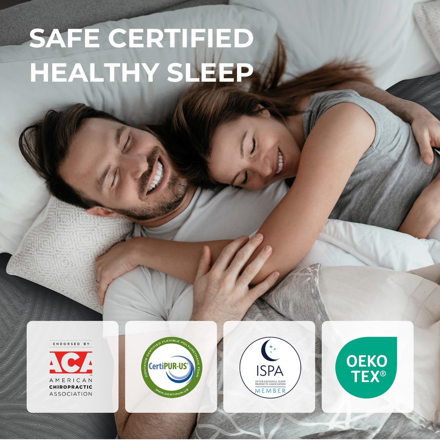 - 5-Zone Ergo Support for Pressure Relief - Engineered with a 5-zone design, this memory foam full size mattress integrates support foam and comfort bars to target pressure points from head to toe. It helps redistribute pressure while maintaining stability, promoting proper spinal alignment and back pain relief. Endorsed by the American Chiropractic Association (ACA), it's designed for restorative sleep.