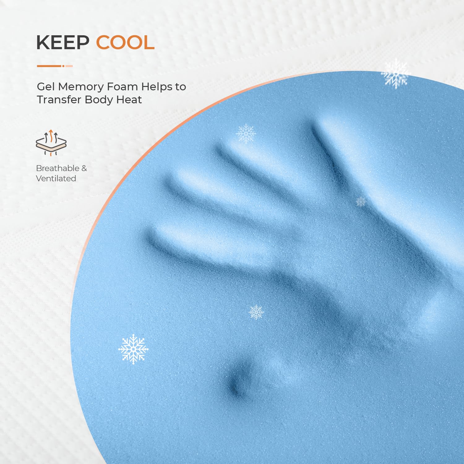 - COOL SLEEP - The gel memory foam layer of the full bed mattress helps transfer body heat to keep you cool while you sleep.