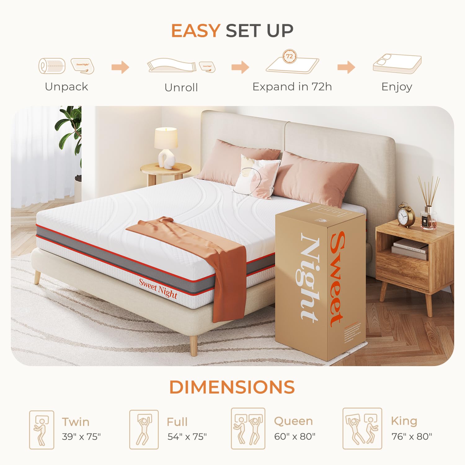 - MATTRESS IN A BOX & 10-YEAR WARRANTY - Sweetnight vacuum-packaged mattresse in a box will be delivered directly to your door. We recommend 72 hours for your new mattress to return to its full shape. All our mattresses come with a 10-year warranty.
