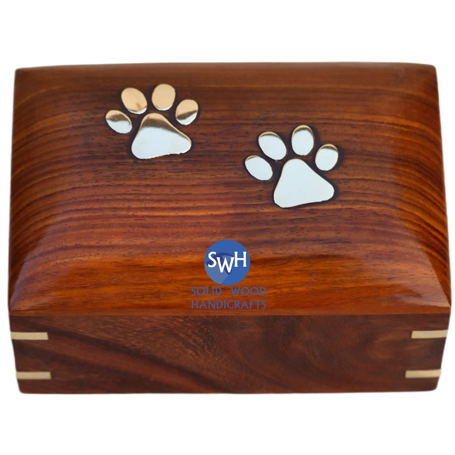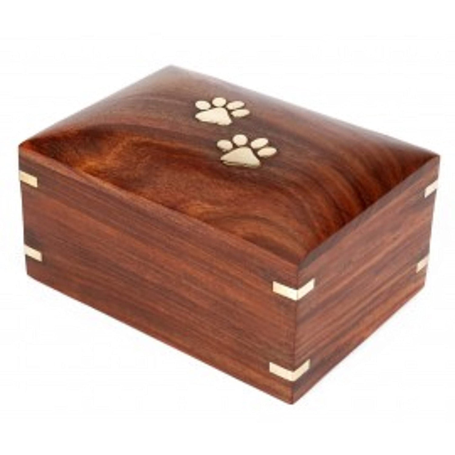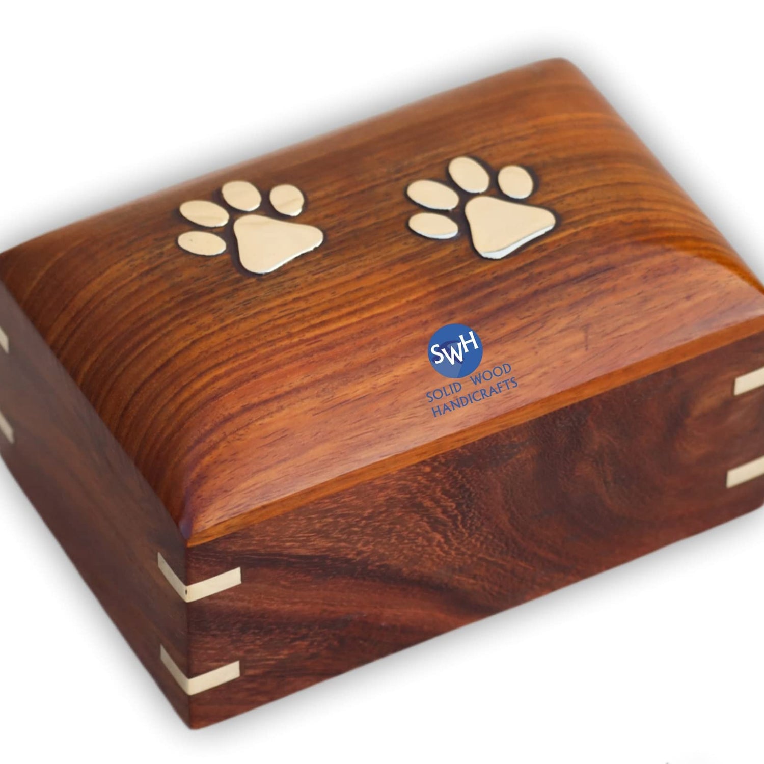 SWH Wooden pet urn | Rosewood Paw Print pet cremation urn for Dog Cat ashes | Wooden urn box with bottom opening system for small dog cat ashes | urn box for small pet with brass corner– 30.00 lbs