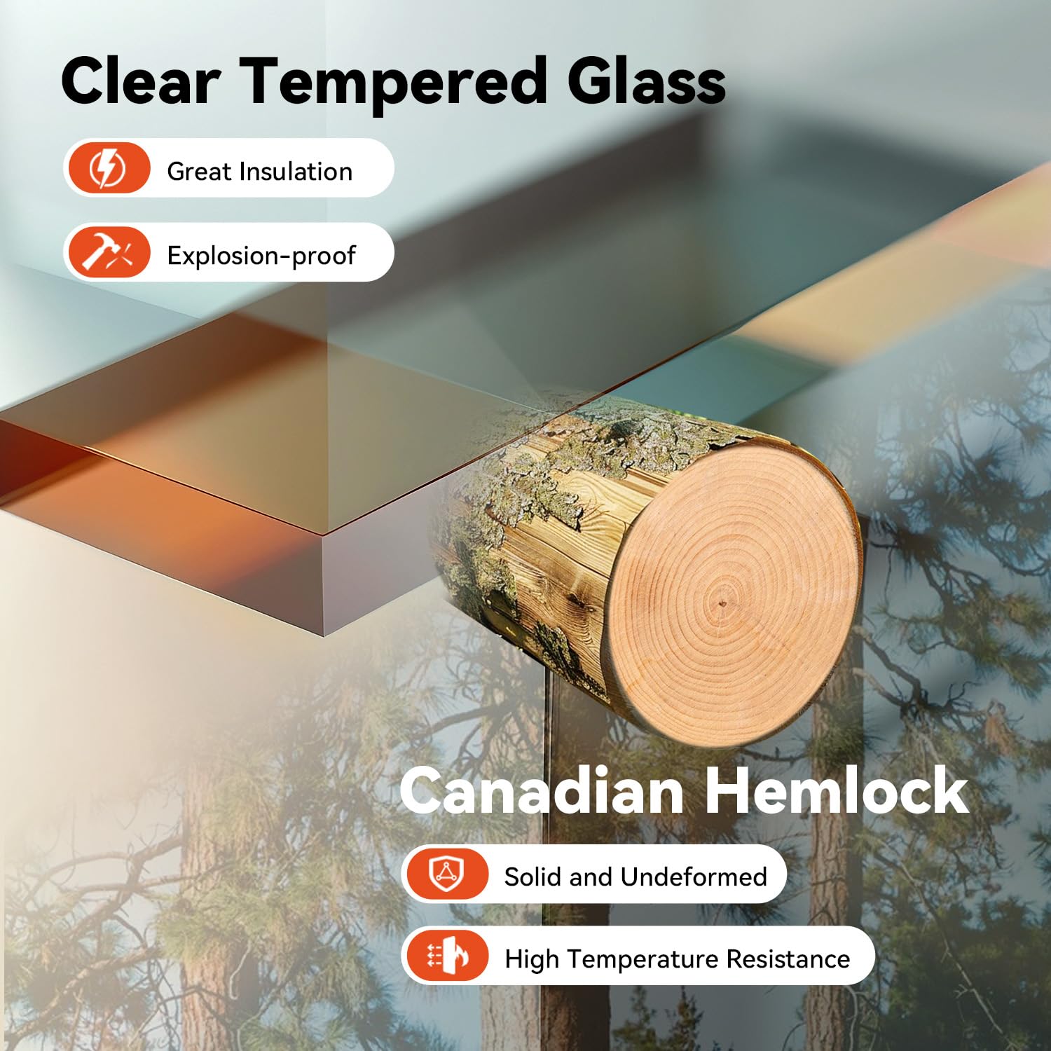 - 【Strong and Durable】Our indoor sauna is made of Canadian quality hemlock wood and is known for its excellent insulation and for not cracking when heated. Ultra-thick 6mm tempered glass doors and side glazing withstand higher temperatures for durability and safety. Imagine being surrounded by the natural warmth of hemlock wood and feeling completely relaxed.