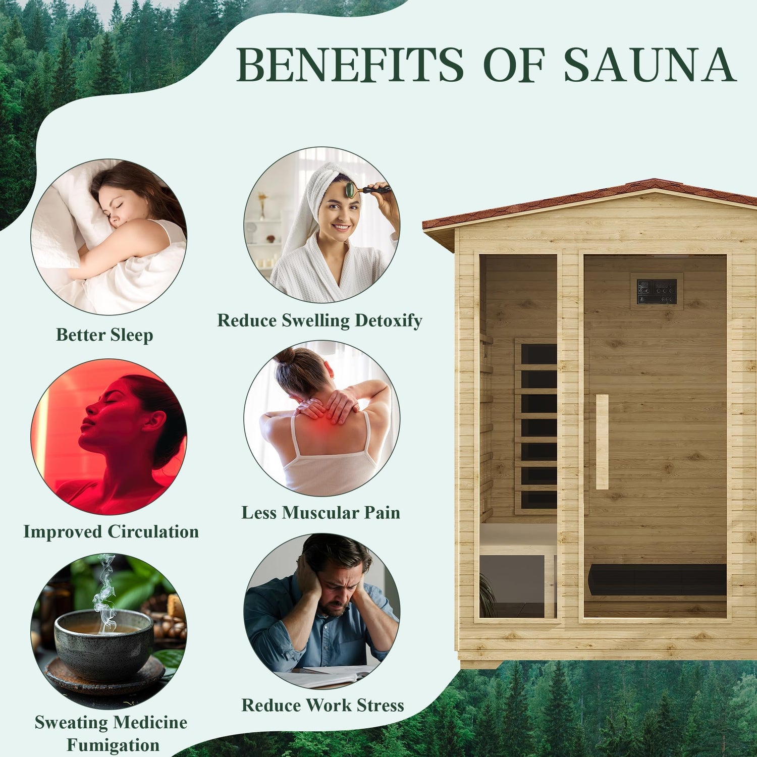 SWHSE Outdoor Sauna,Full Spectrum Infrared Sauna for 4 Person,Home Sauna with 10 Minutes Warm Up Heating Tubes & Panels,Personal Wooden Sauna Room with Bluetooth Speaker,3060Watt