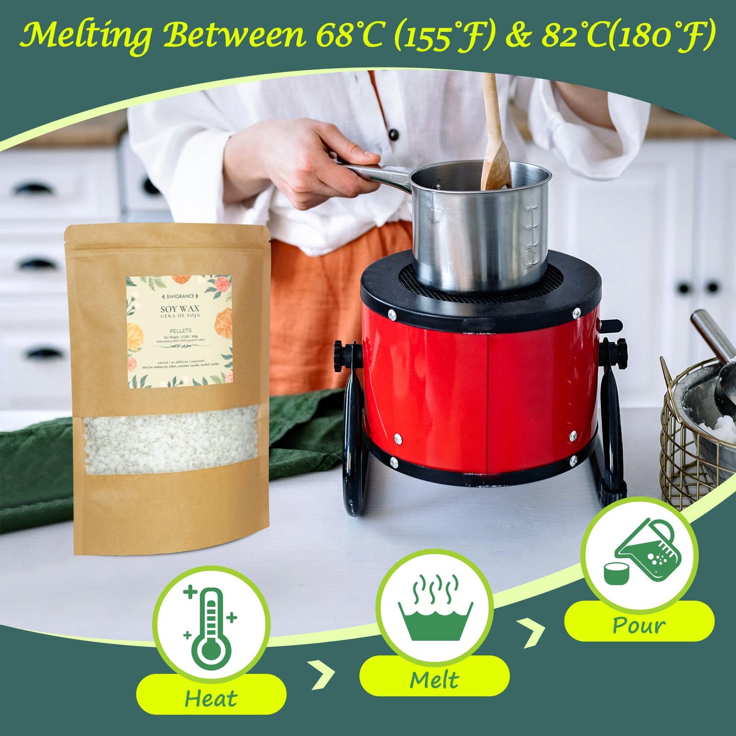 • 【Simplified Candle Making Crafts】 Melting Between 68°C (155°F) and 82°C(180°F). This premium soy wax is easy to melt, pour, and use in your favorite candle making projects. Meeting the needs of different users seeking quality candle making supplies.