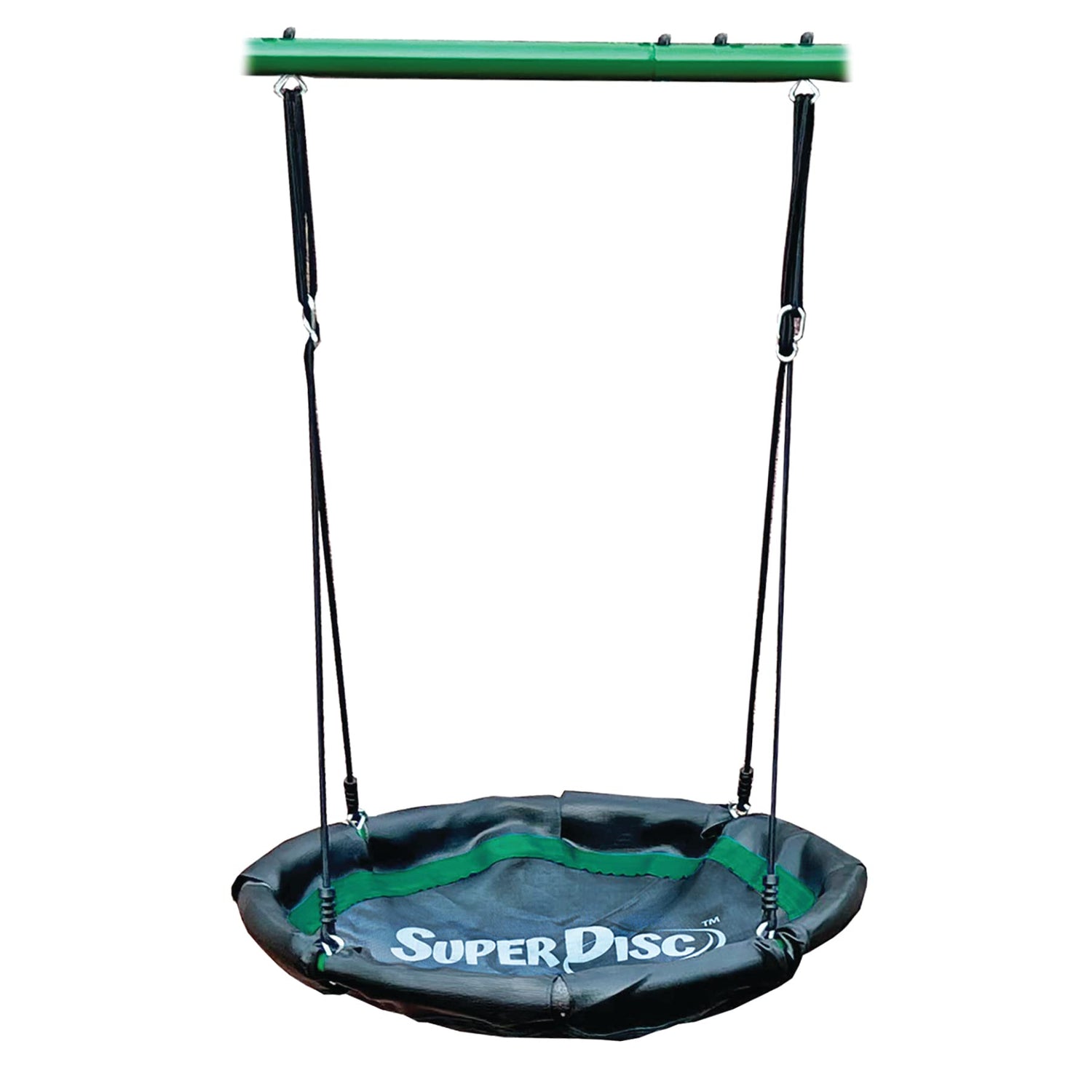 - Includes the following rider stations: 1ea Super Disc Swing. An adjustable height SuperDisc Swing for two with Super High Quality rope. Super Disc Swing, which has a Padded metal foam covered Frame for strength and safety. ASTM Qualified. It has a strong seat and soft and comfortably deep for safety. 1ea Sling Swing Seat. An adjustable height Sling Swing for all sizes of children. Ultra Strength Rope. 1ea Ultra Air Glider - for 2 kids or one. It provides a fun gliding experience