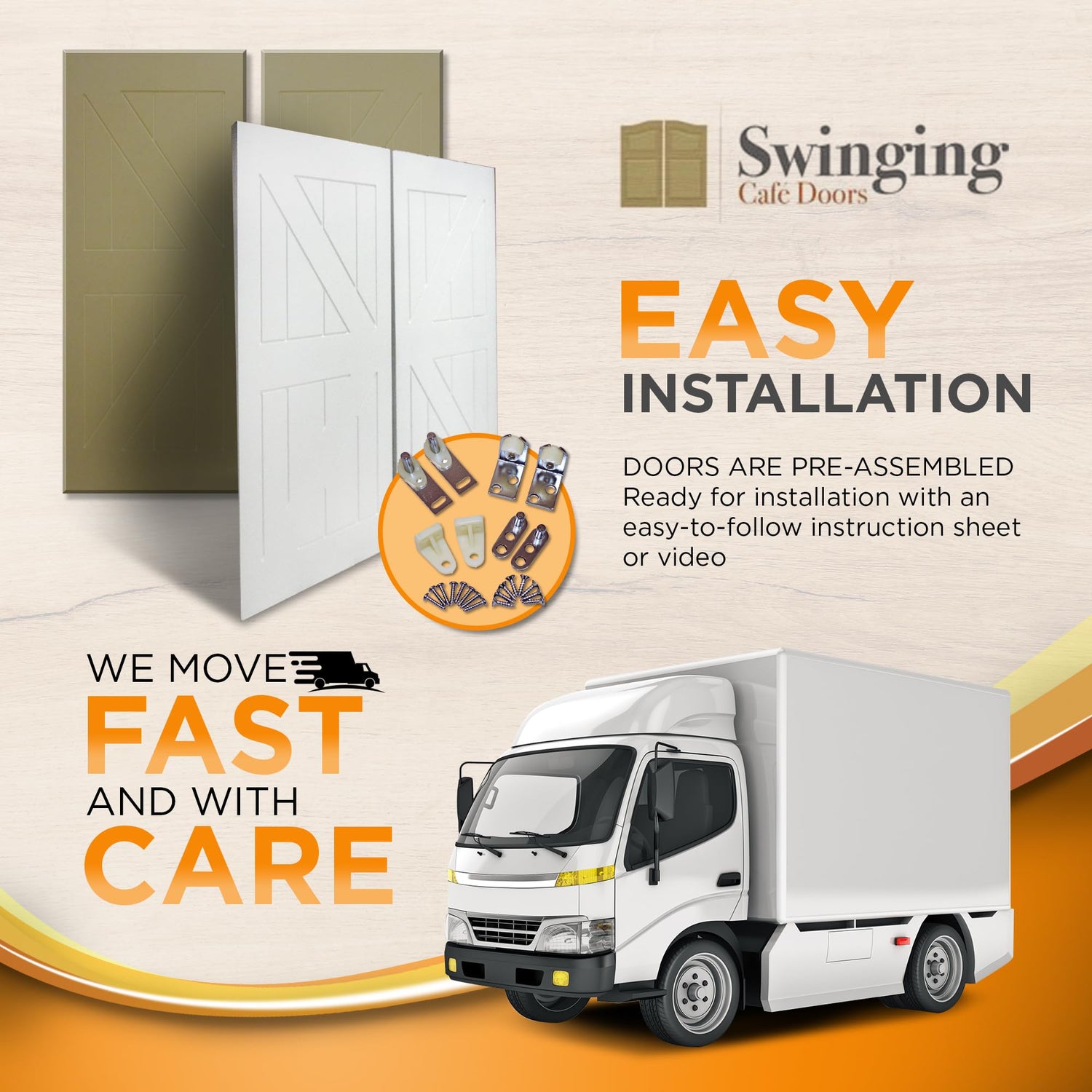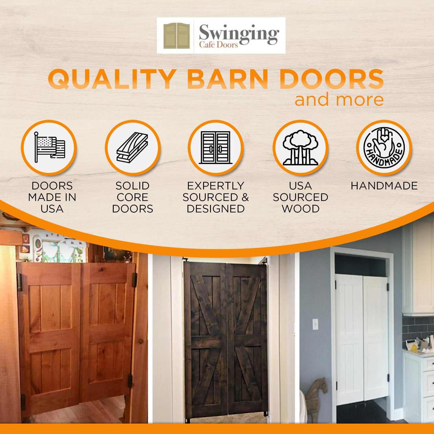 • CONVENIENT SIZE: All of our swinging barn doors are 42 inches tall and come in various door opening widths to match your house or cafe interior wood door requirements. These particular saloon doors feature a door opening that is 36 inches wide.