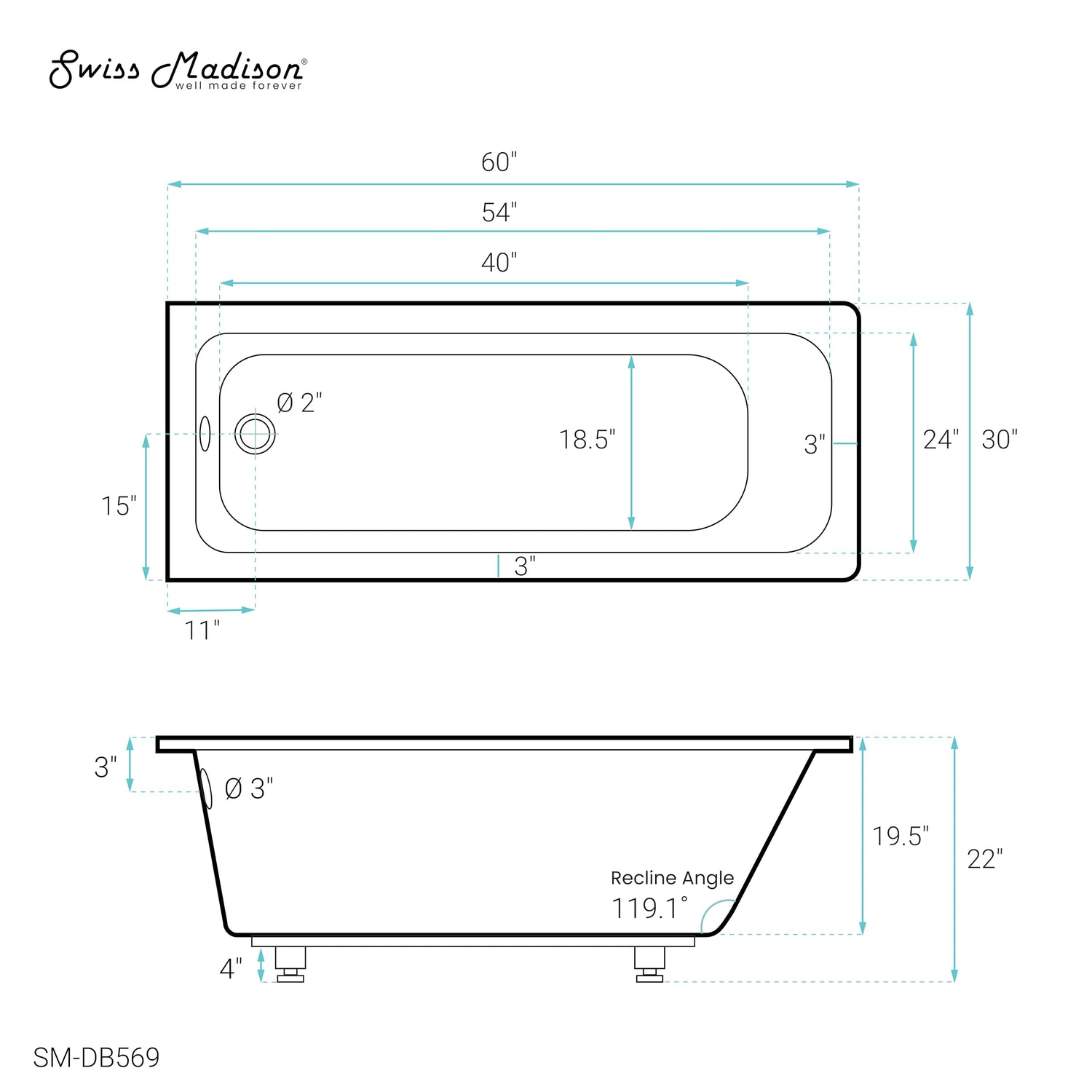 Swiss Madison Well Made Forever SM-DB569 Voltaire 60"x30" Acrylic Drop-In Bathtub