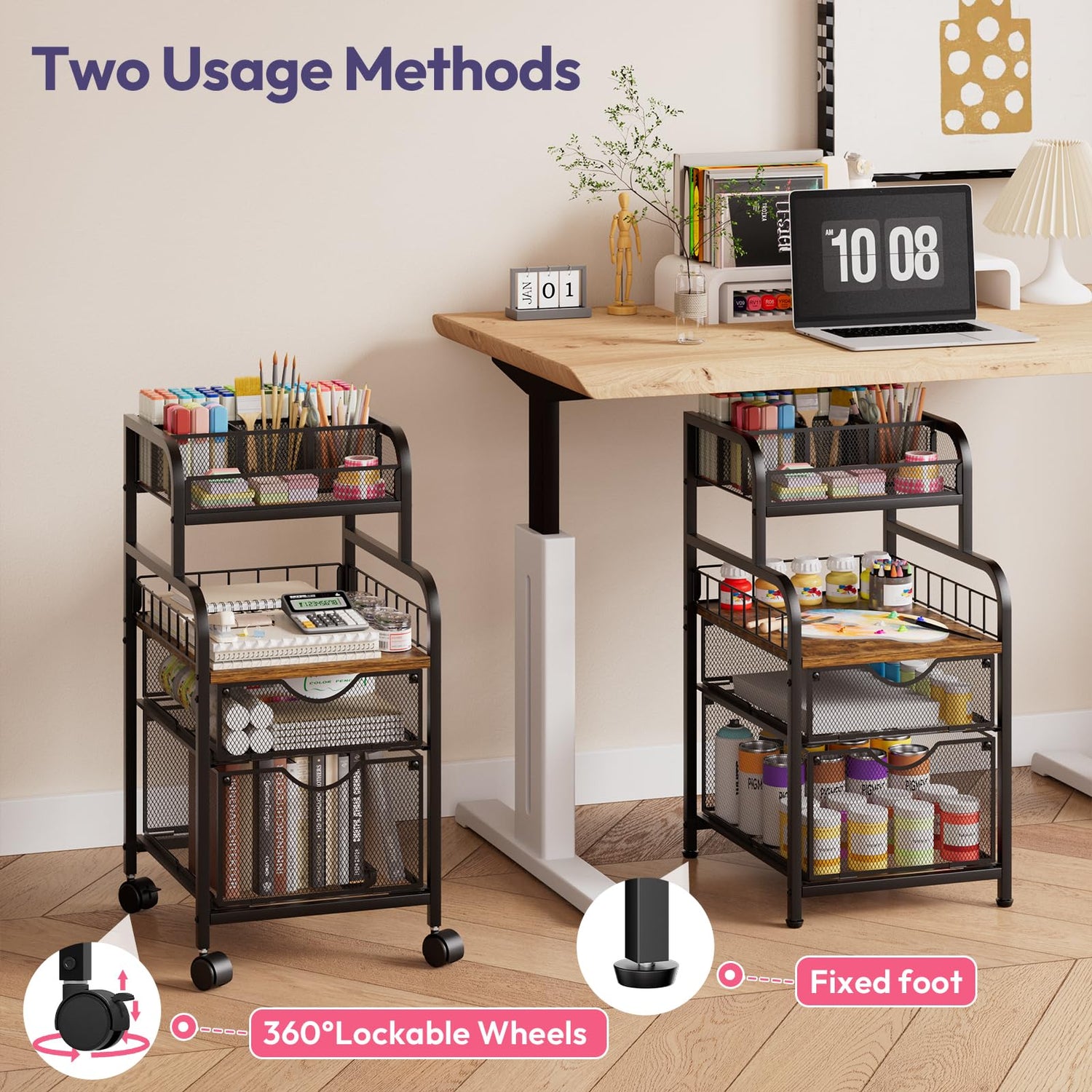 - [Flexible Workspace Support]: Rolling file cart is your ultimate rolling storage cart with drawers for organizing office documents or crafting essentials. Whether under your desk or beside it, this rolling cart organizer moves with your workflow