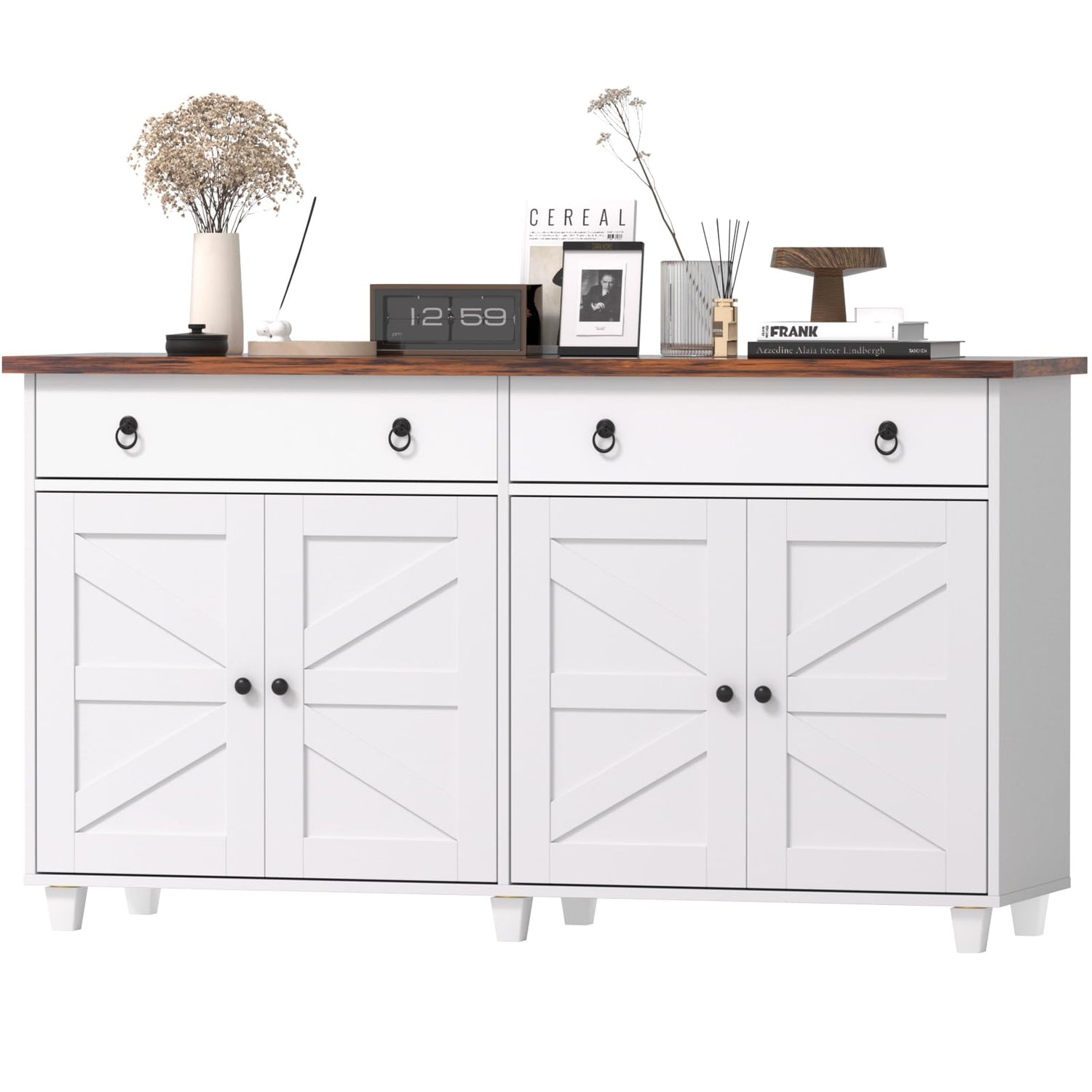 - 【Modern & Farmhouse Sideboard】 A simple white exterior with a sliding barn door and black handles add modern style to this farmhouse coffee bar. Sophisticated and elegant vintage look with walnut color tabletop can easily match your home decor.