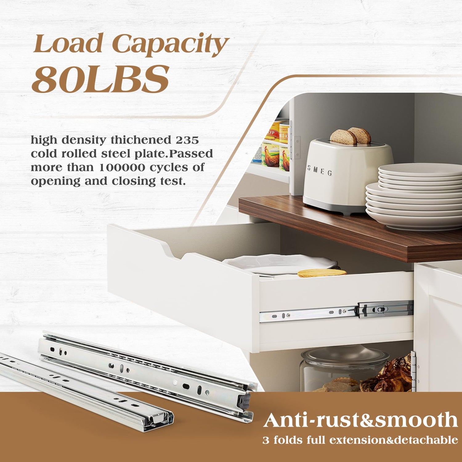 - Stable and Durable Build: Crafted from quality P2 MDF, kitchen storage cabinets features anti-tip hardware and 8 back panel clips to ensure a safe, wobble-free experience. Full extension drawer slides hold 80 pounds, 30 pounds more than regular slides. This tall kitchen pantry cabinet with magnetic door locks add convenience and reliability in any room