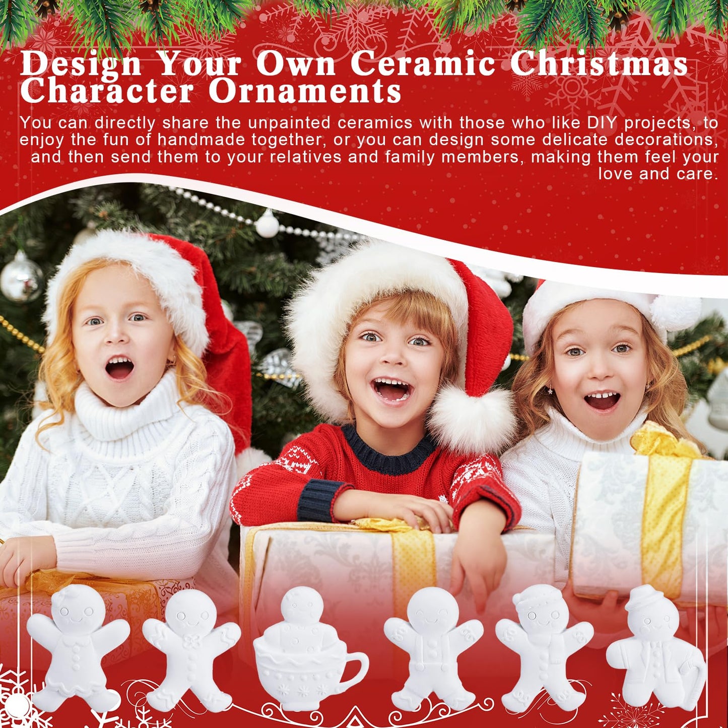 Syhood 24 Pcs Design Your Own Ceramic Christmas Blank DIY Character Ornament Bulk Unpainted Village Ceramic to Paint Ready to Design Your Own