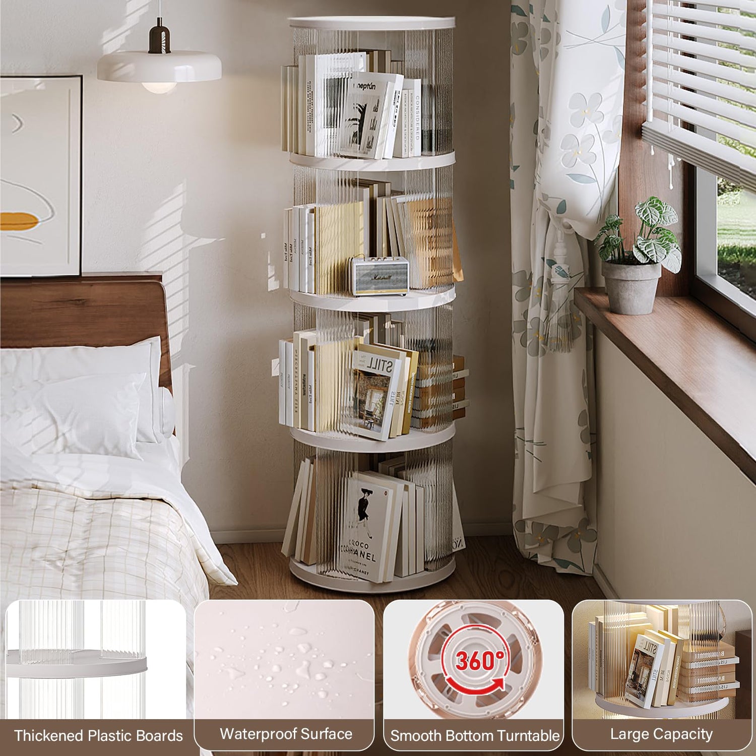 - LIGHTWEIGHT AND PORTABLE: Plastic rotating bookshelves are significantly lighter than those made of traditional materials like wood or metal, making them easy to move around and rearrange in your living space.