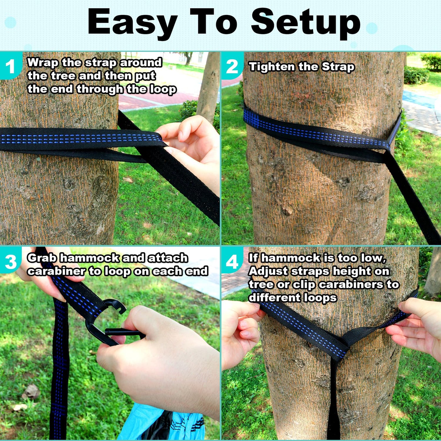 - Adjustable Tree-friendly Straps: Each strap 10 feet long with 18+1 loops,Makes setting up a breeze. so you can adjust it to the perfect height. No need to tie any knots and not damaging the trees.