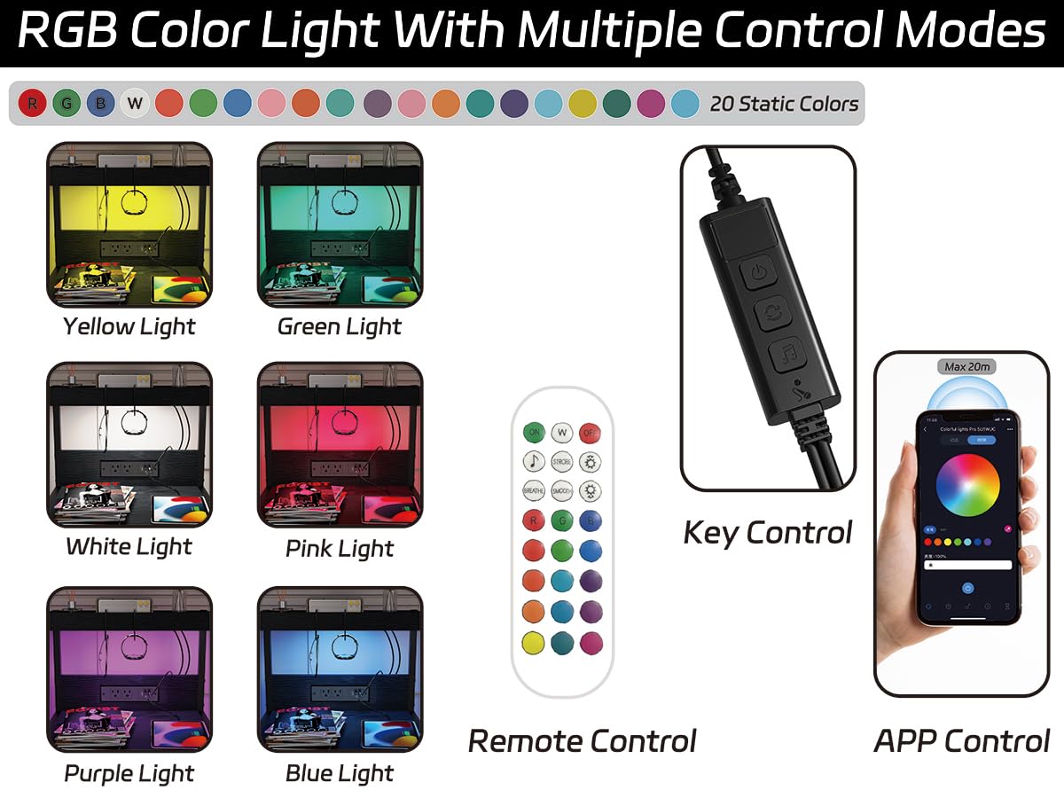 - Colorful LED Light: This RGB light strip has 20 static colors, 20+dynamic modes, and a music mode. It would be a large bonus for your room setting. You can freely change the brightness and color temperature by using either the phone app or the key. Play music and enjoy a fabulous light show with our mesmerizing LED end table