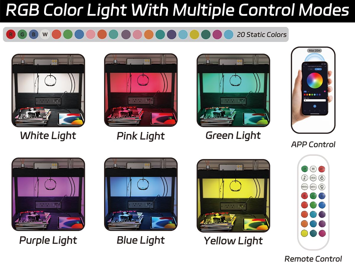- Colorful LED Light: This RGB light strip has 20 static colors, 20+ dynamic modes, and a music mode. It would be a large bonus for your room setting. You can freely change the brightness and color temperature by using either the phone app or the key. Play music and enjoy a fabulous light show with our mesmerizing LED end table