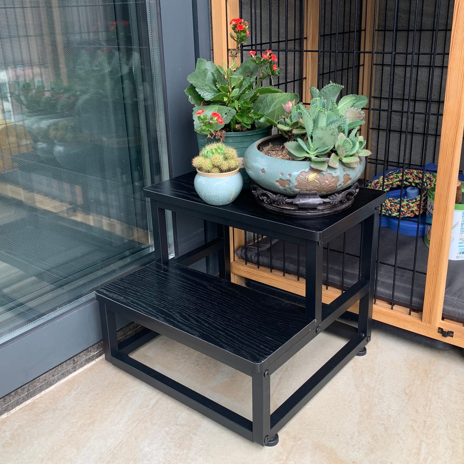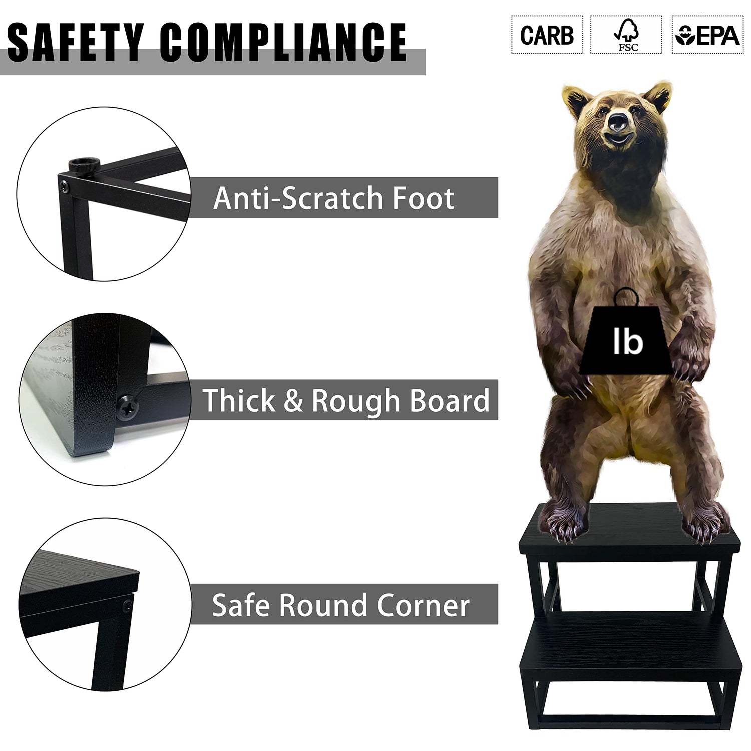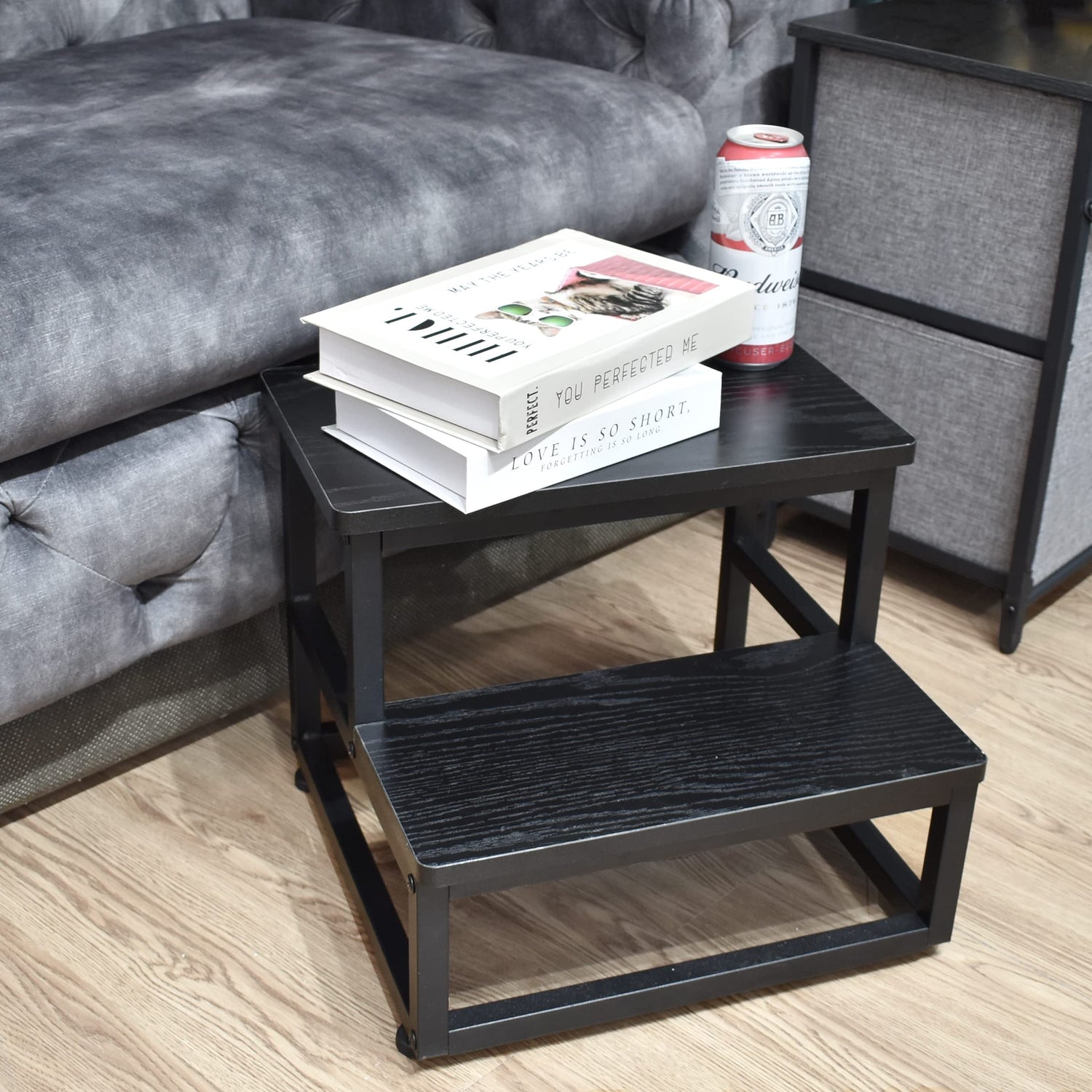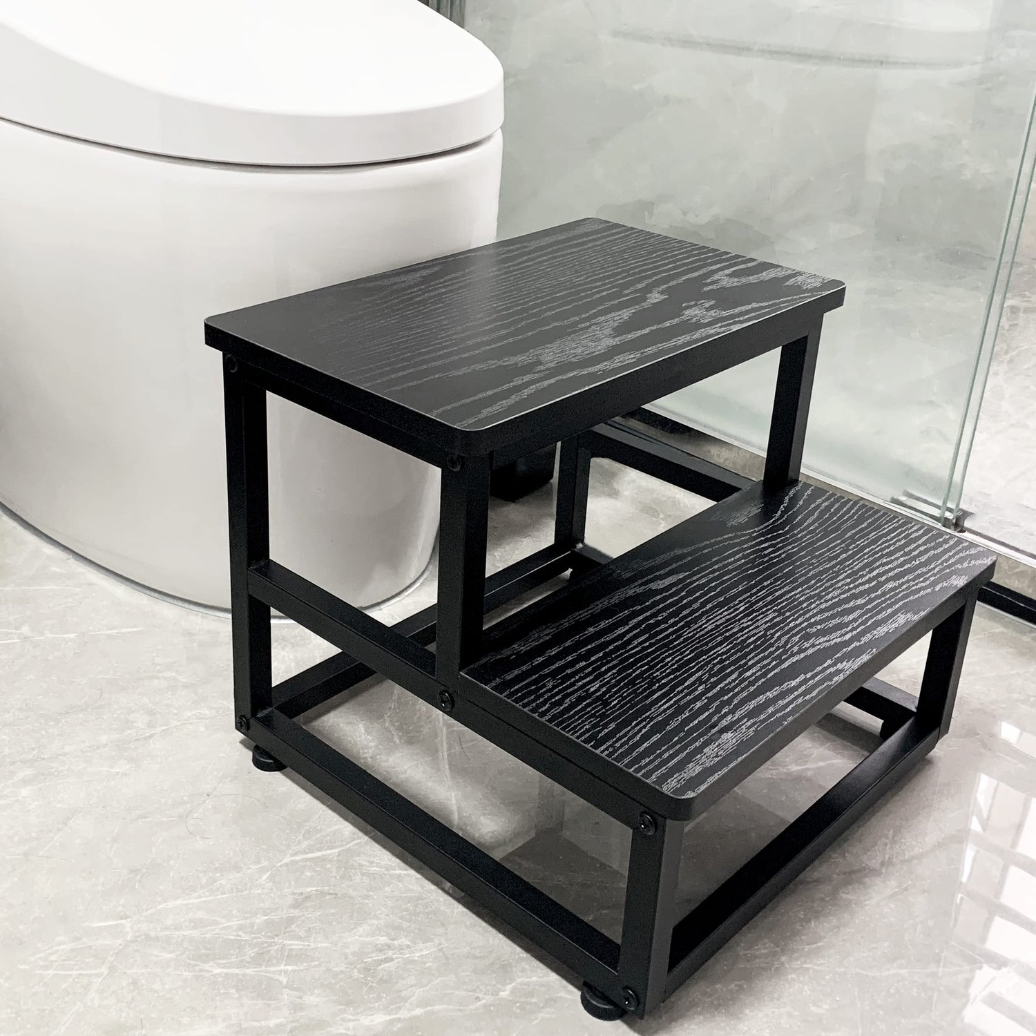 SZLHANJZ Step Stool, Bedside Steps for High Beds with Round Corners, 2 Steps Footstool for Adults, Metal and Wood Stepping Stool for Kitchen Bedroom, Load 500 LB, Black