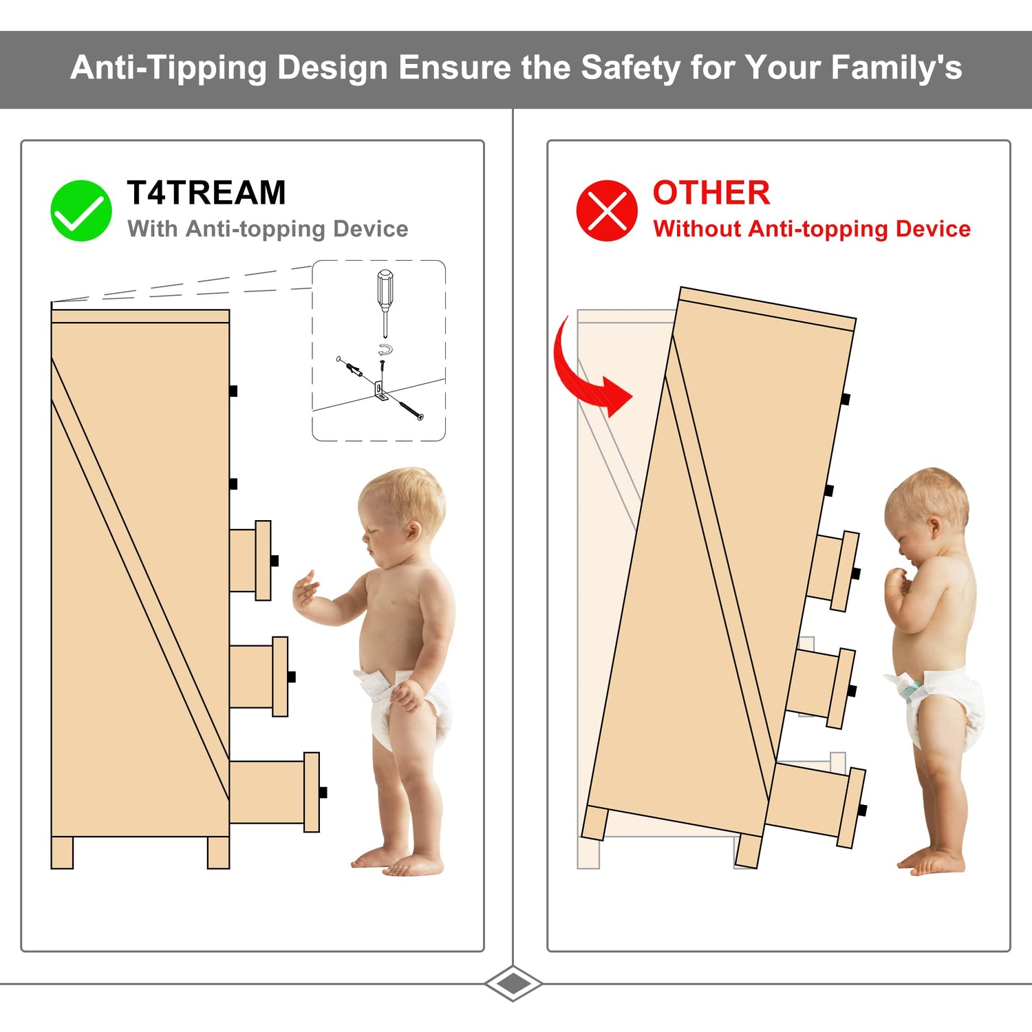 T4TREAM Farmhouse 5 Drawers Dresser Chests for Bedroom, Wood Rustic Tall Chest of Drawers, Dressers Organizer for Bedroom, Living Room, Hallway, Dark Rustic Oak