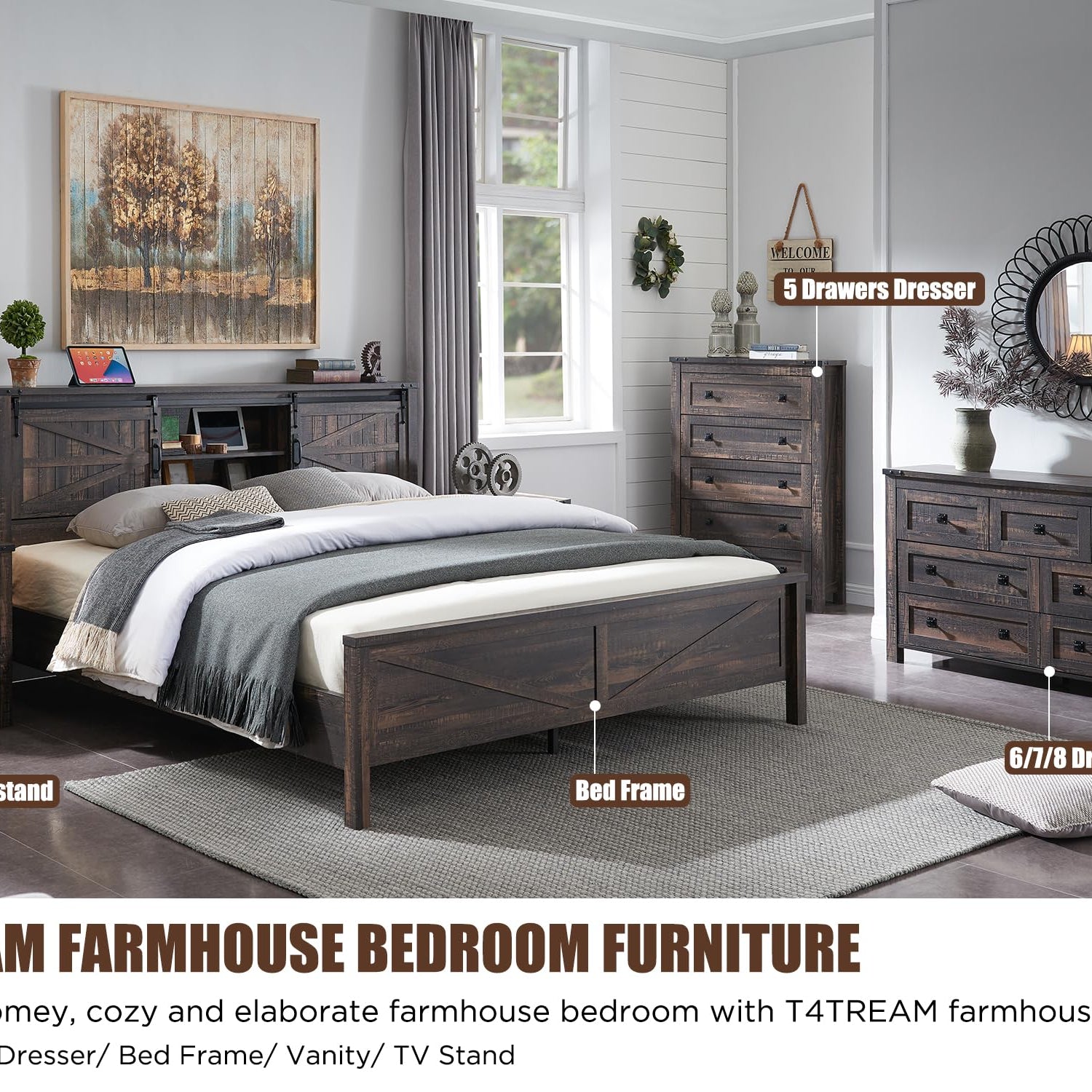 - 【Wooden Farmhouse 6 Drawers Dresser】Rustic wooden 6 drawer dresser with barn door style and spacious design is a perfect combination of modern and farmhouse style, adding character and charm to your bedroom and living room. Can be used for clothing organizer/lingerie dresser,entryway table, accent storage cabinet for living room.